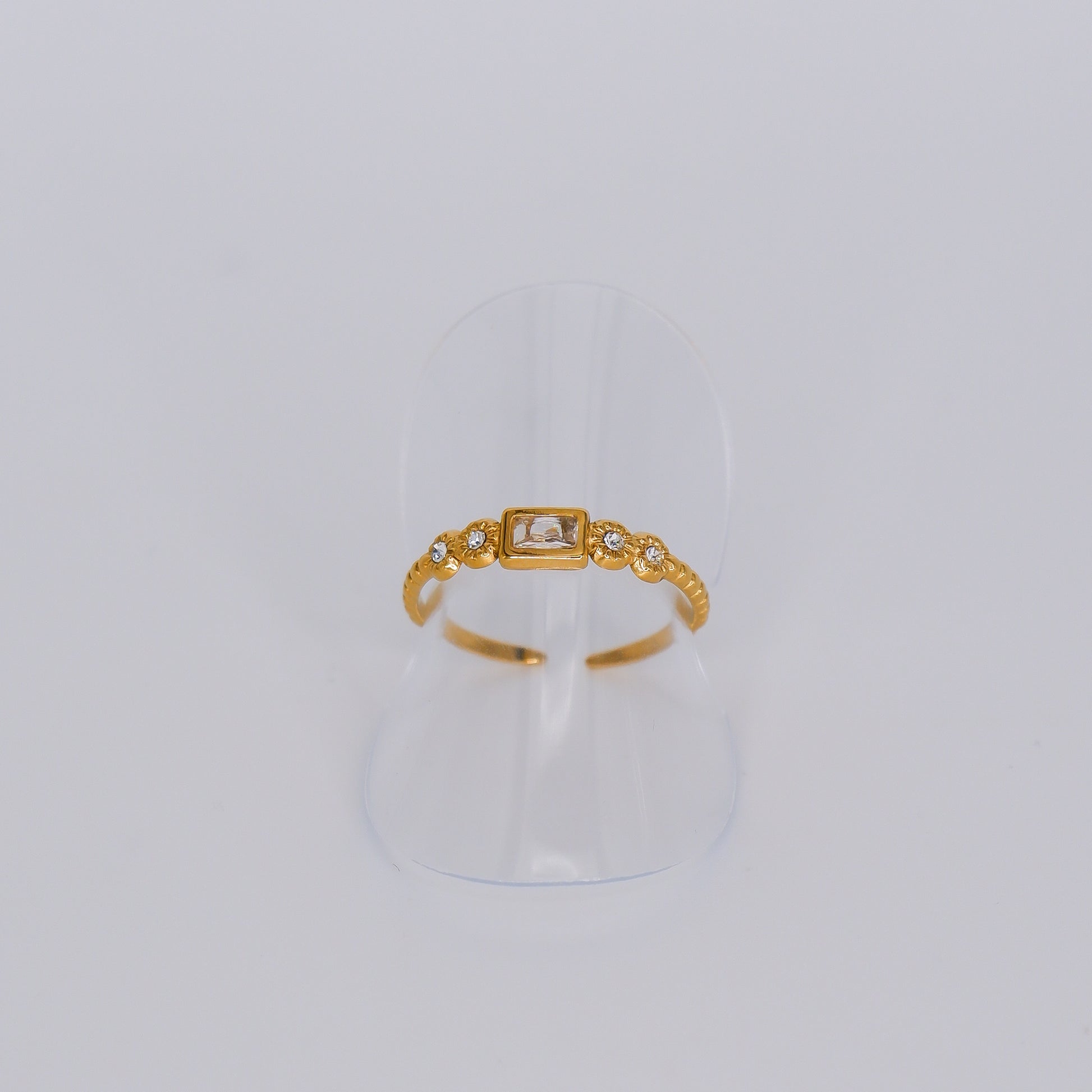 Anel Ajustável 4 Brilhos e 1 Rectângulo Transparente