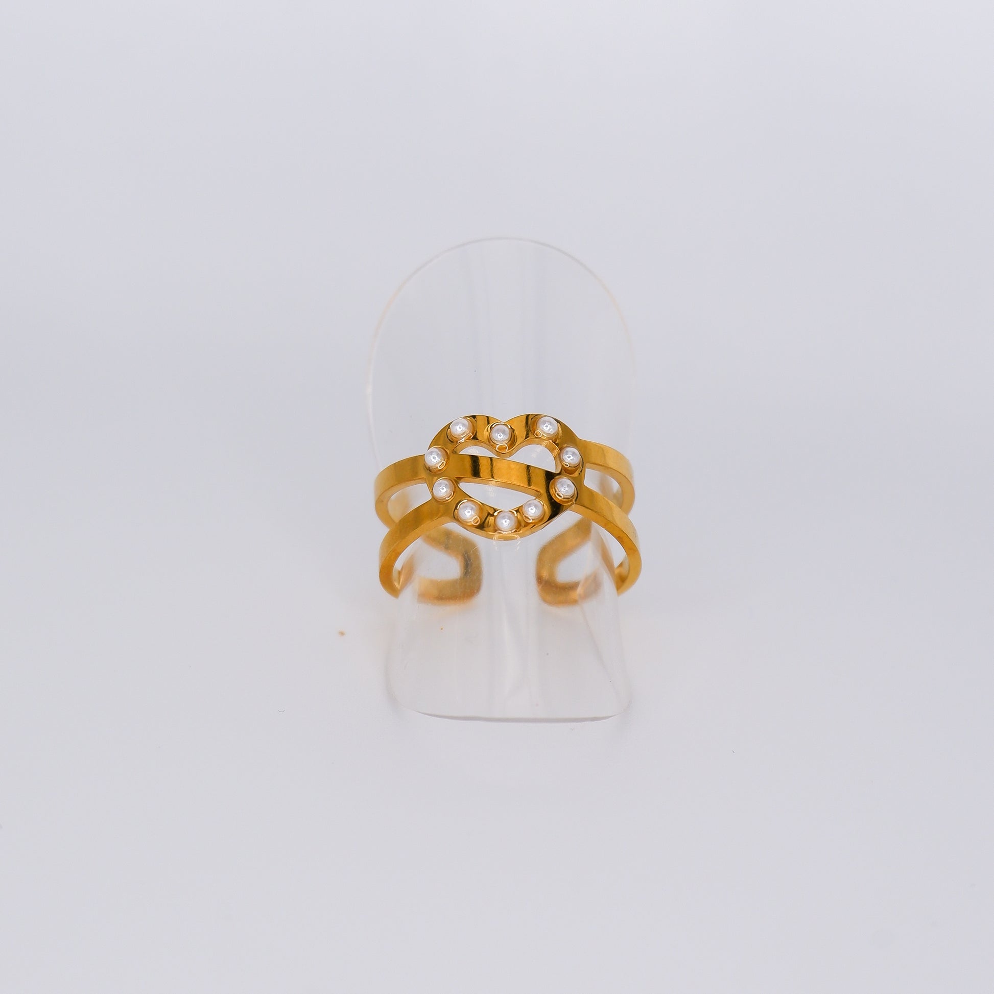 Anel Ajustável Coração com Pérolas