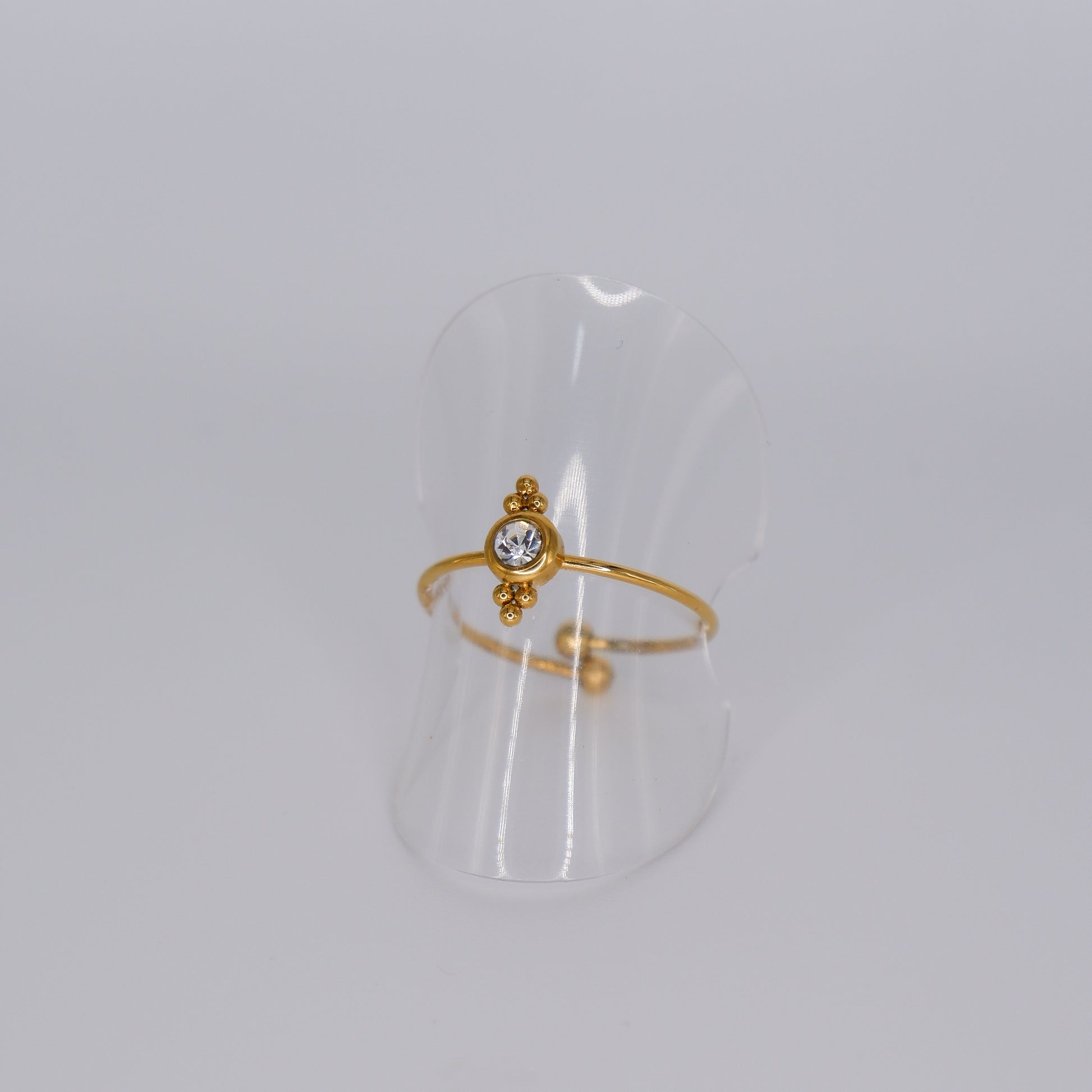 Anel Ajustável Dourado com Pedra Transparente