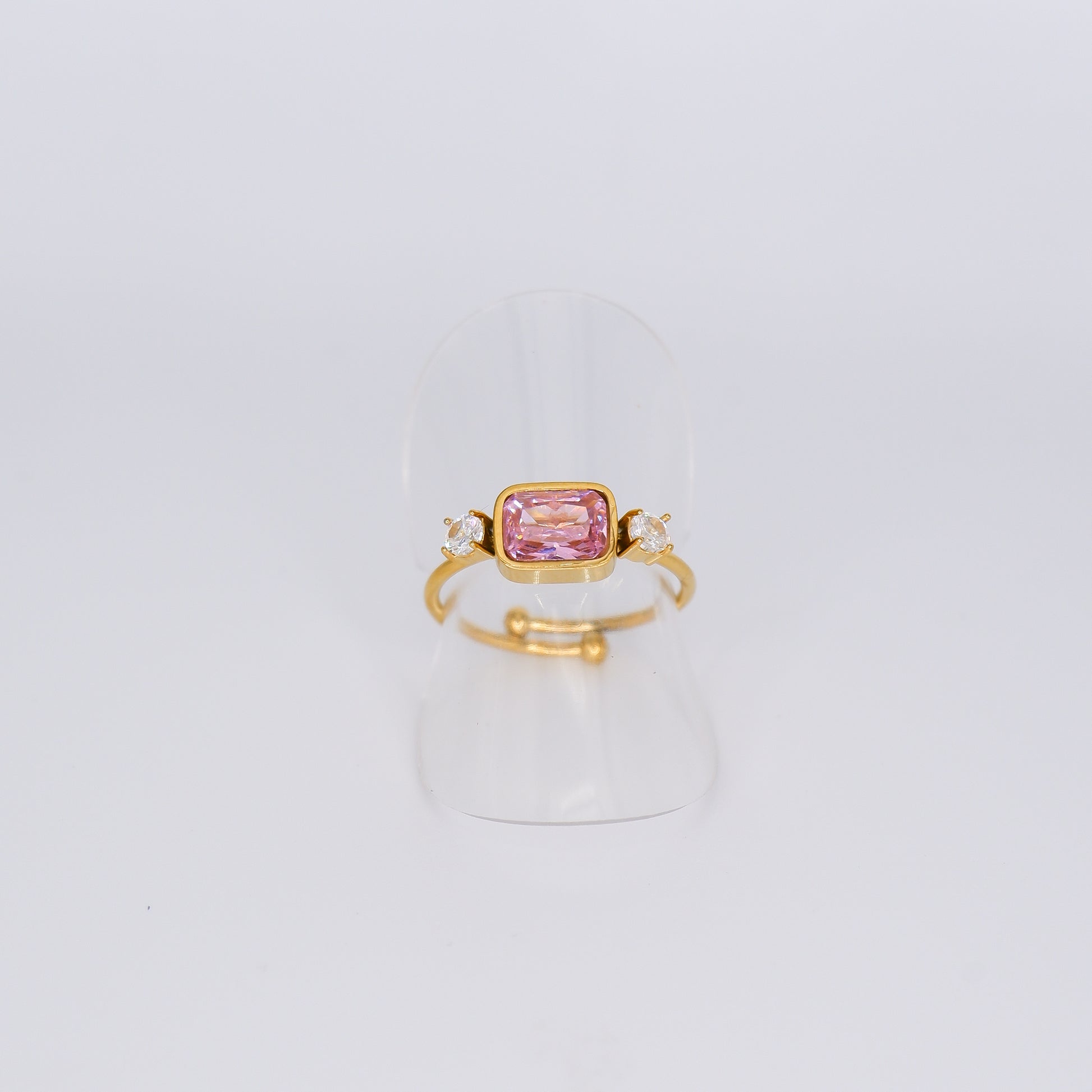Anel Ajustável Rosa e Transparente