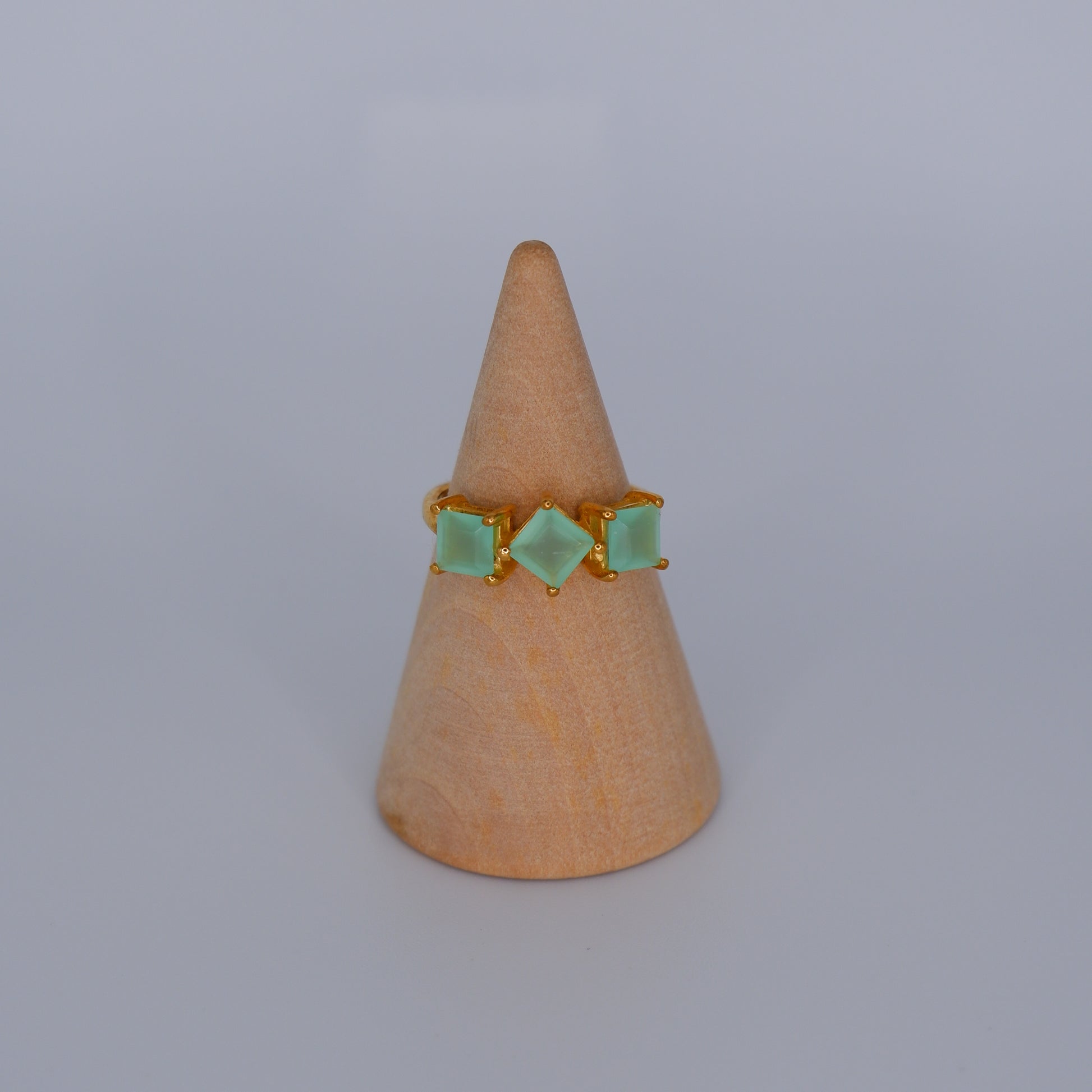Anel S925 três quadrados verde água
