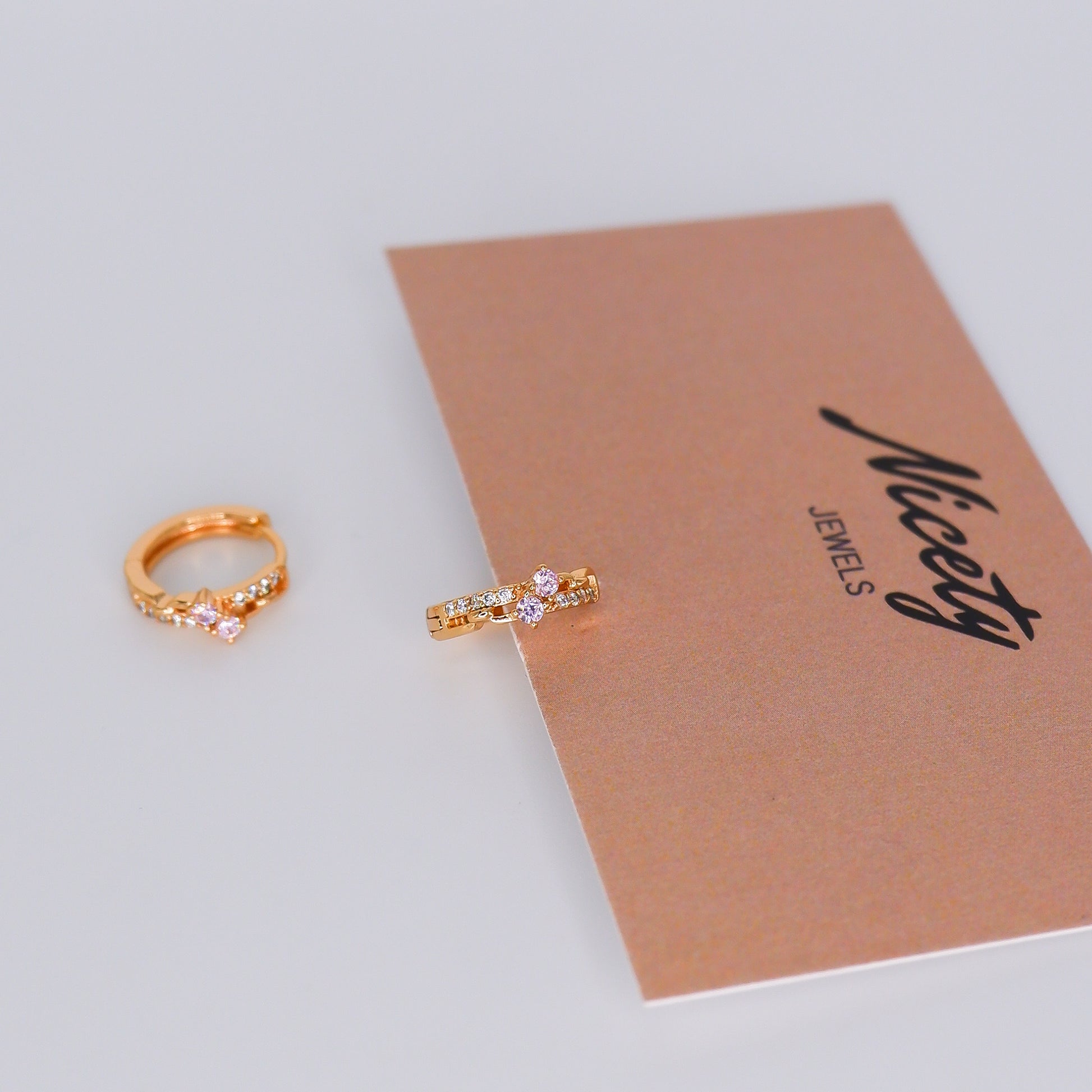 Argola Hipoalergénica 2 Brilhos Rosa Bébé