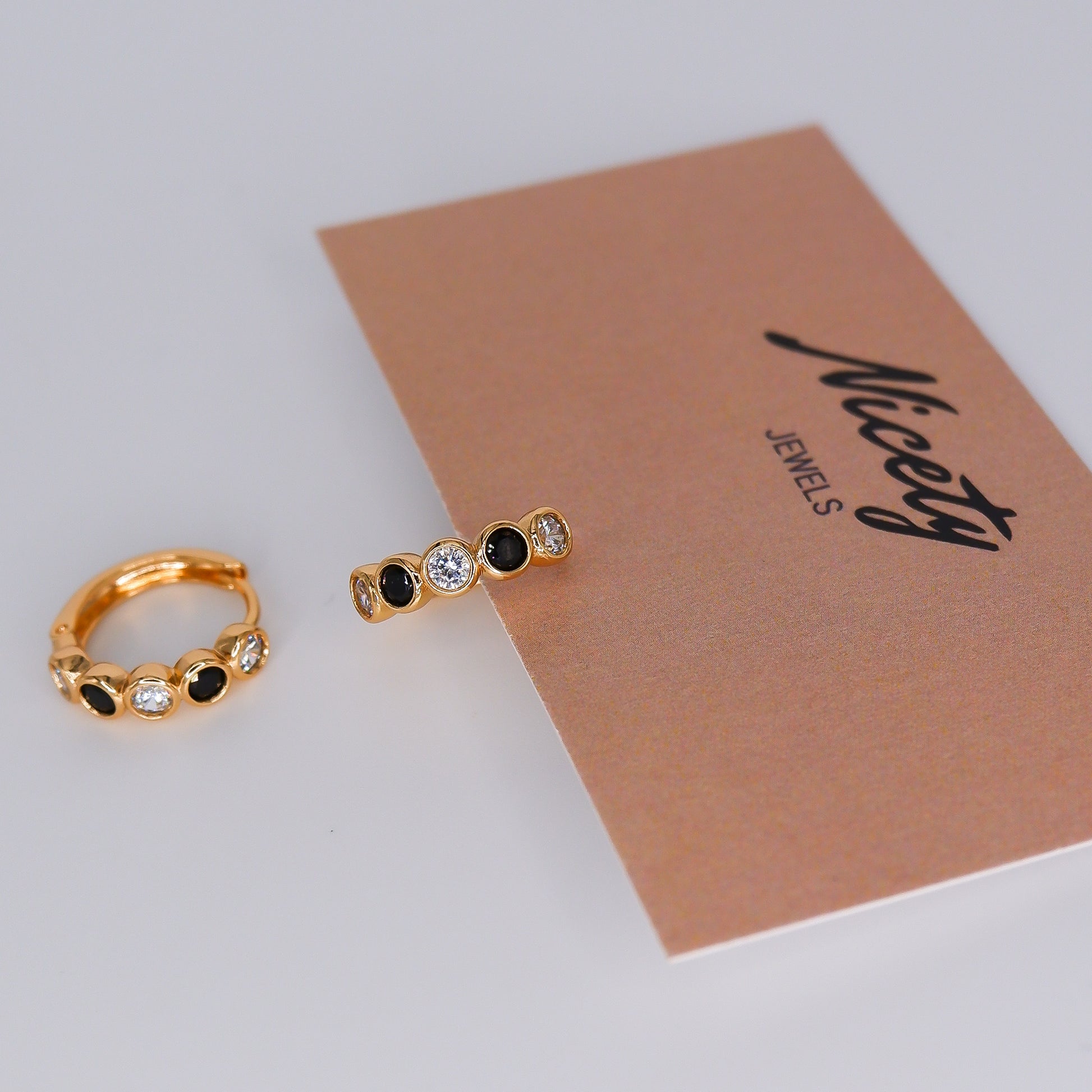 Argola Hipoalergénica Bolas Pretas e Transparentes