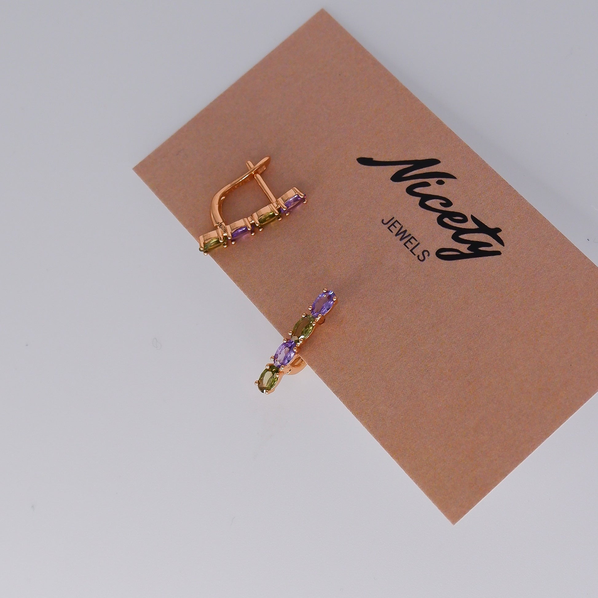 Argola Hipoalergénica Brilhantes Lilás e Verde