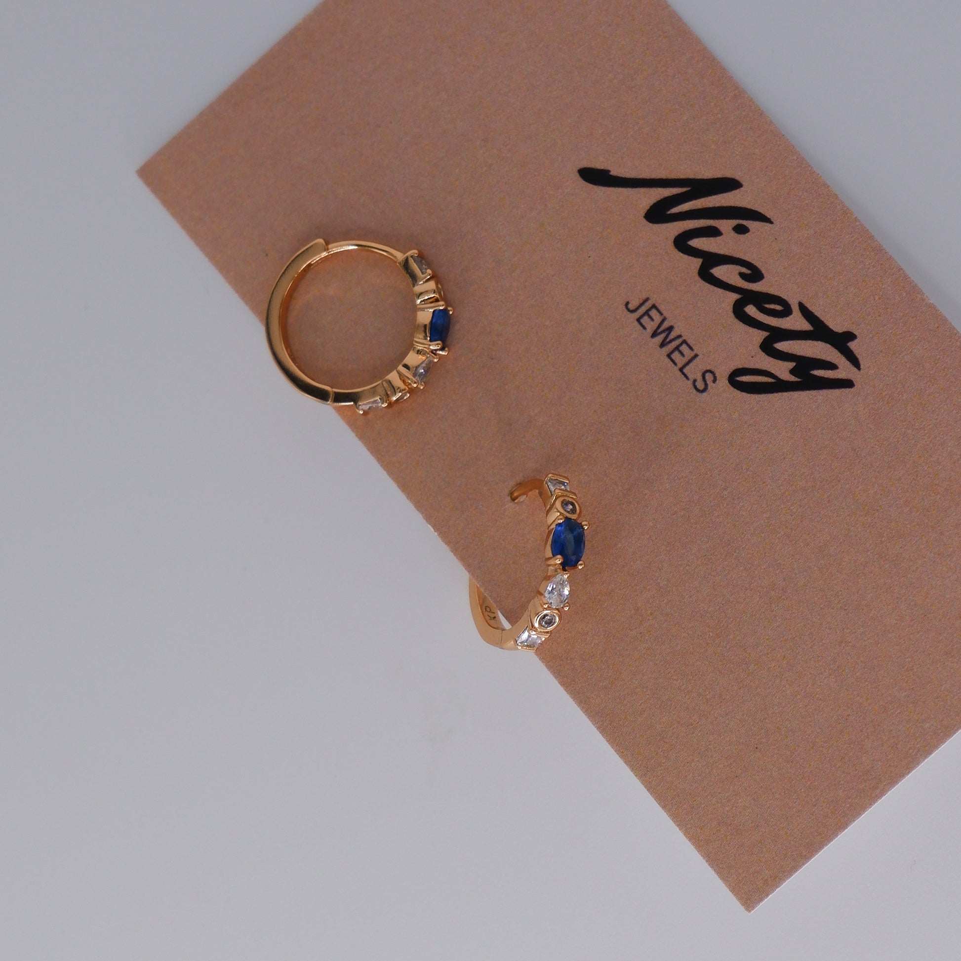 Argola Hipoalergénica Brilhantes Transparentes e Azul