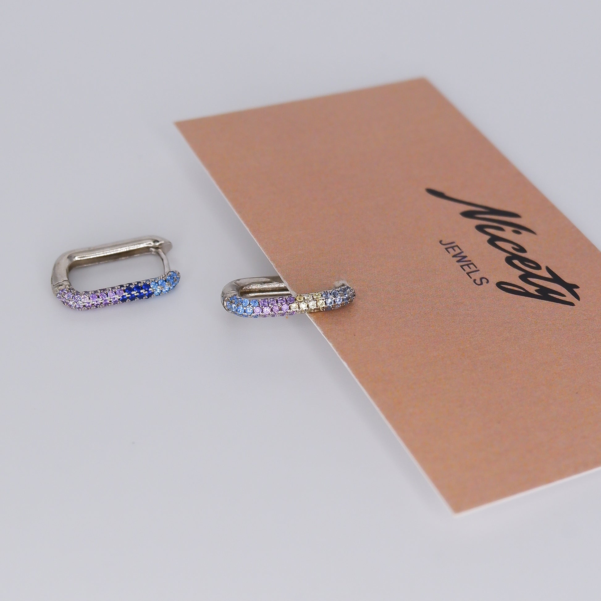 Argola S925 Prateada Retangular com Brilhos Azulados