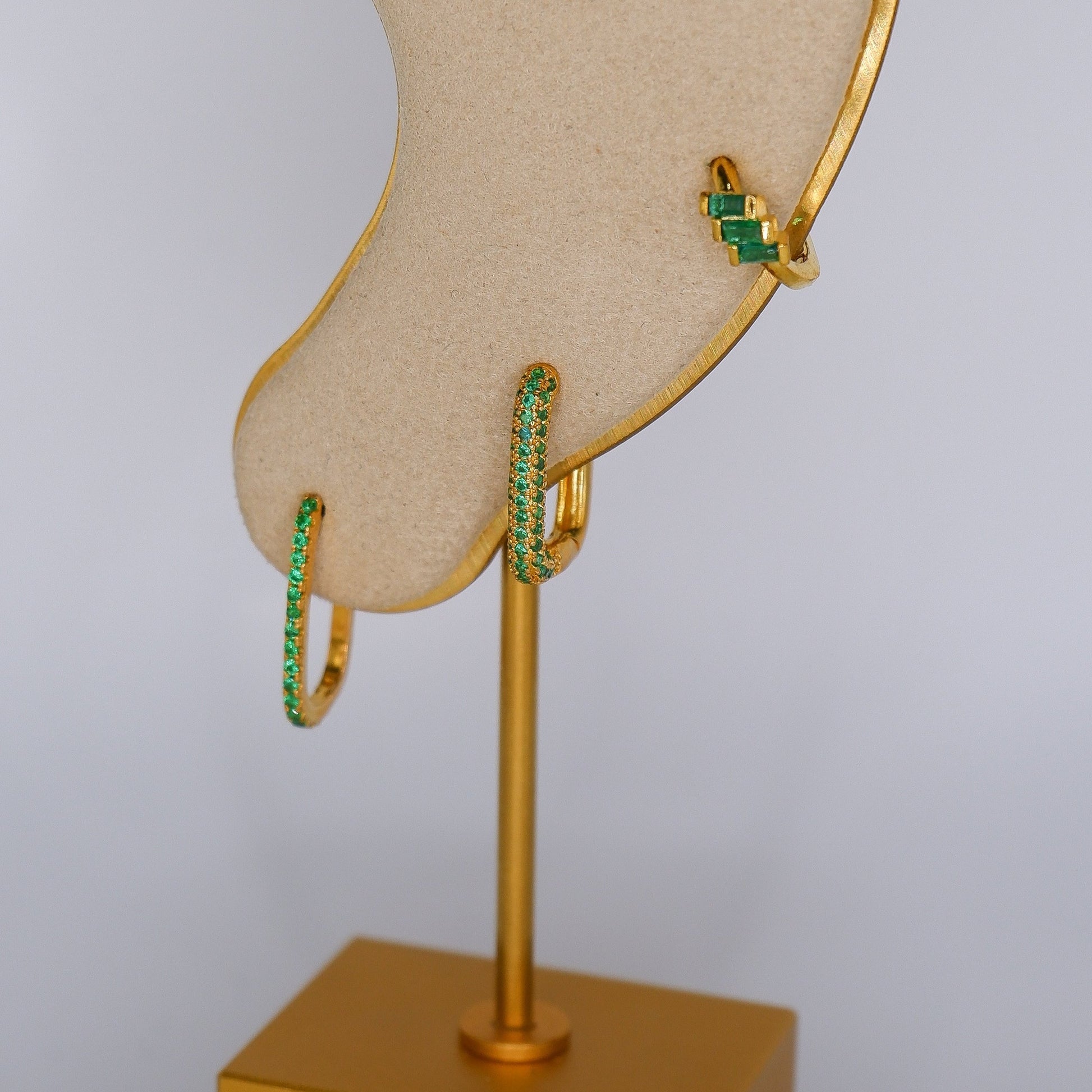 Argola S925 Verde Rectangular Fina, Grossa e 3 Brilhantes