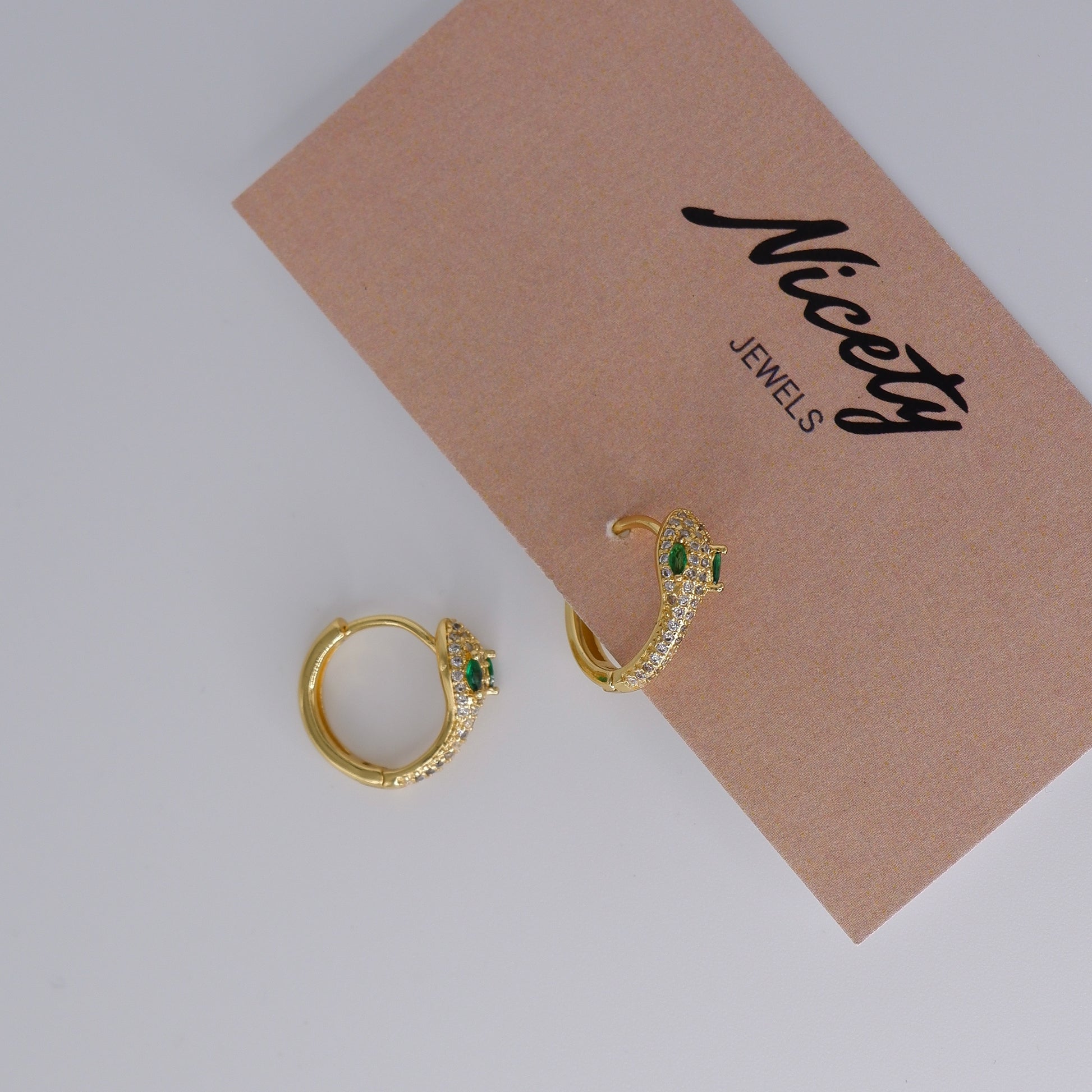 Argolas Douradas e Brilhantes Cobra com Olhos Verdes