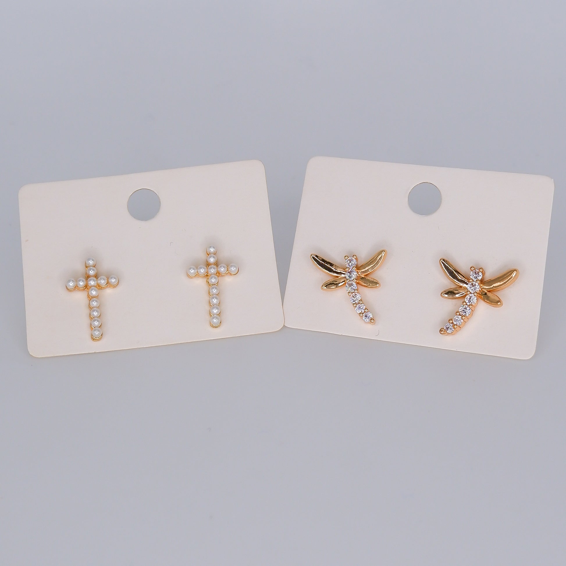 Brinco de Espeto Cruz de Pérolas e Libelinha