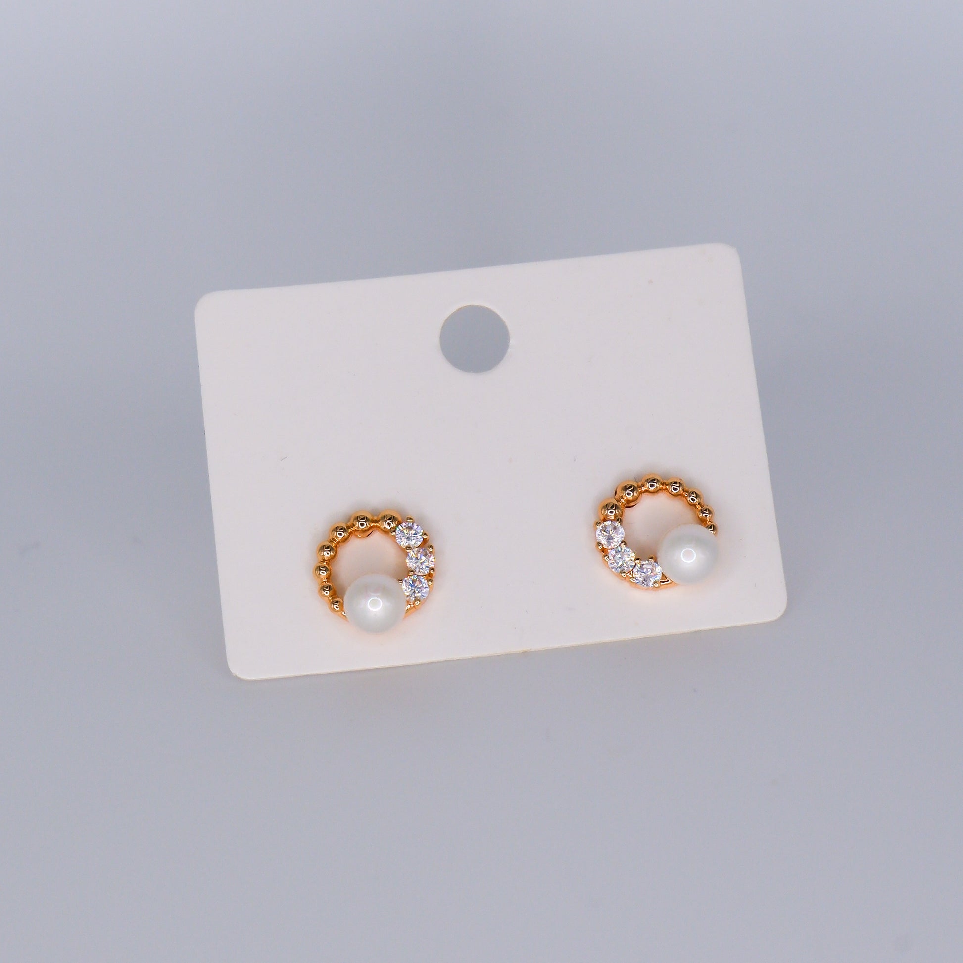 Brinco de Espeto Dourado c/ Brilhantes e Pérola