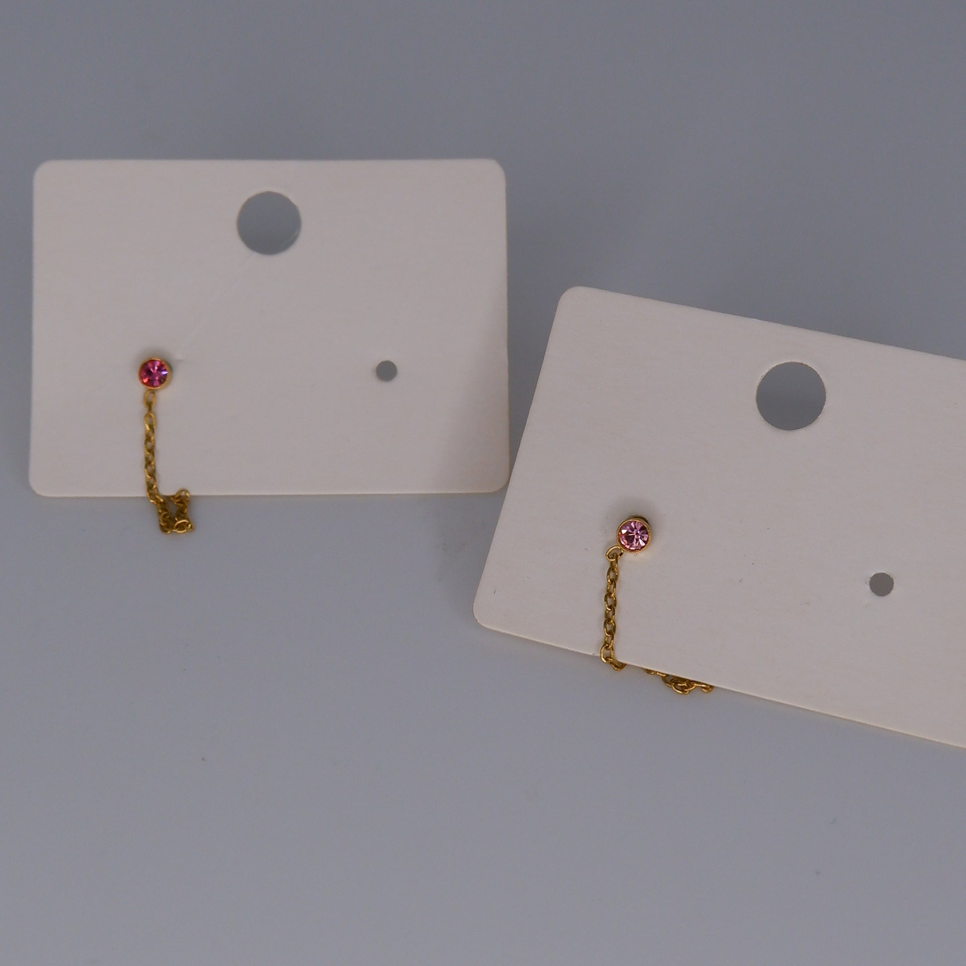 Brinco Espeto Dourado Corrente Rosa