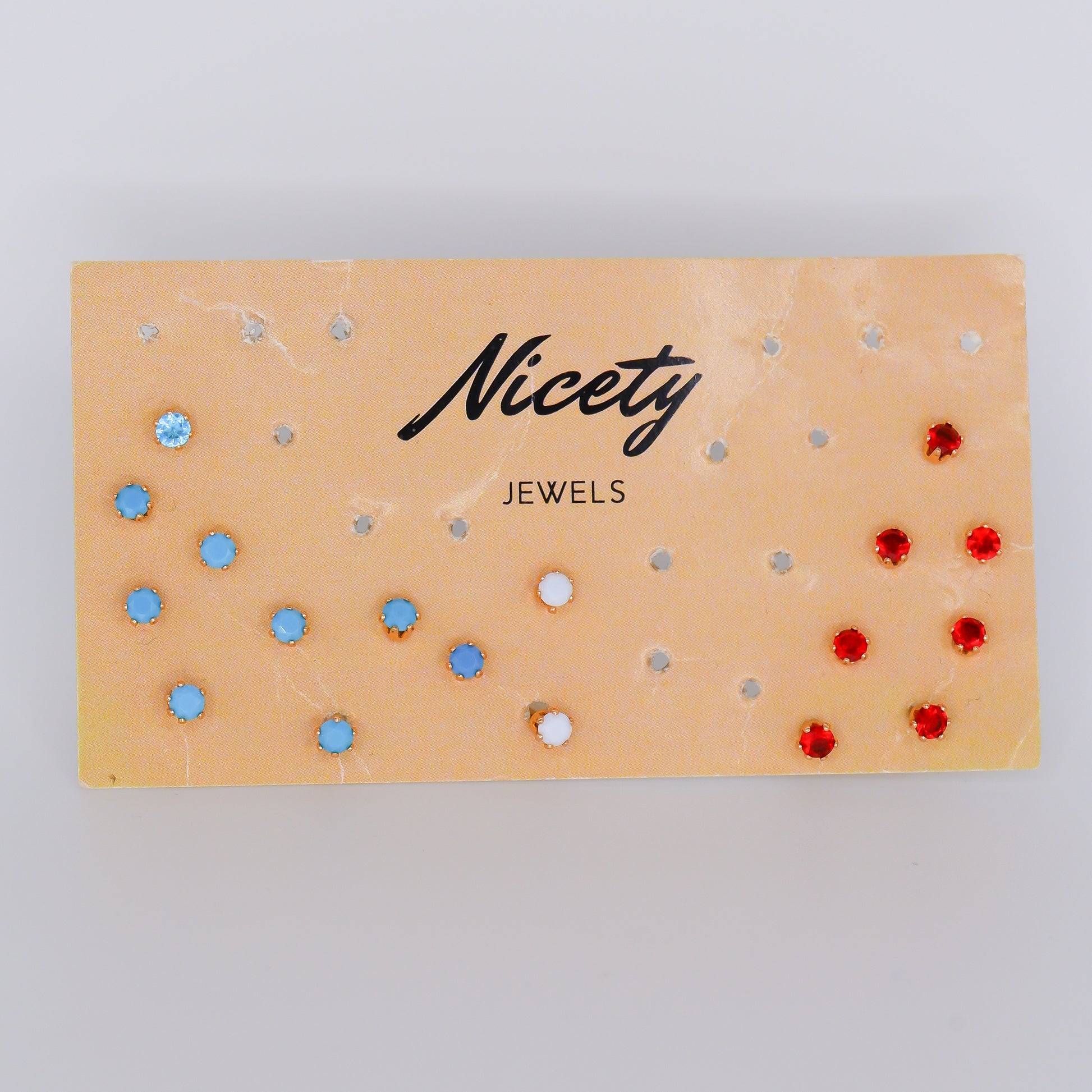 Brincos de Espeto Brilho Azul, Branco e Vermelho