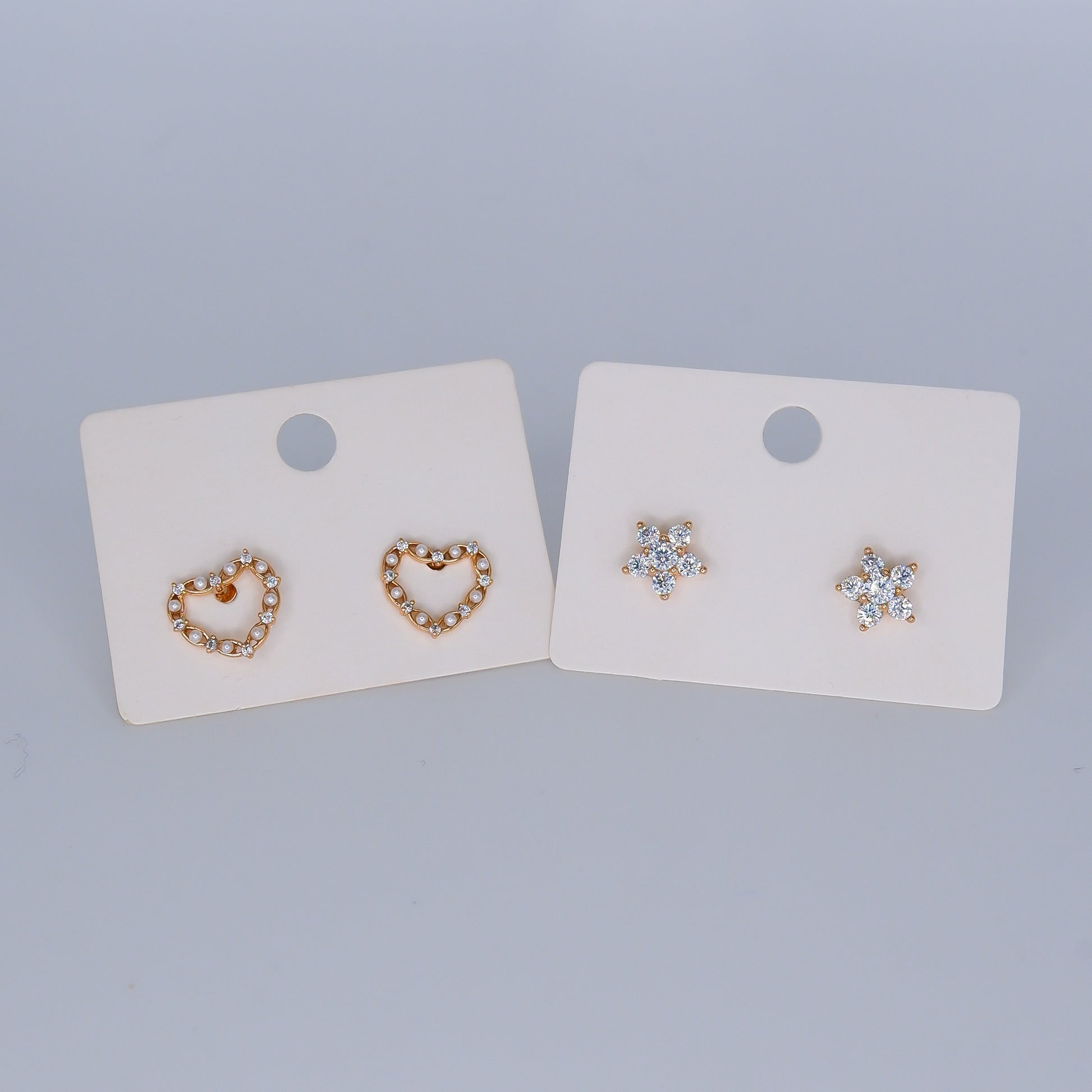 Brincos de Espeto Coração com Pérolas e Flor Brilhante