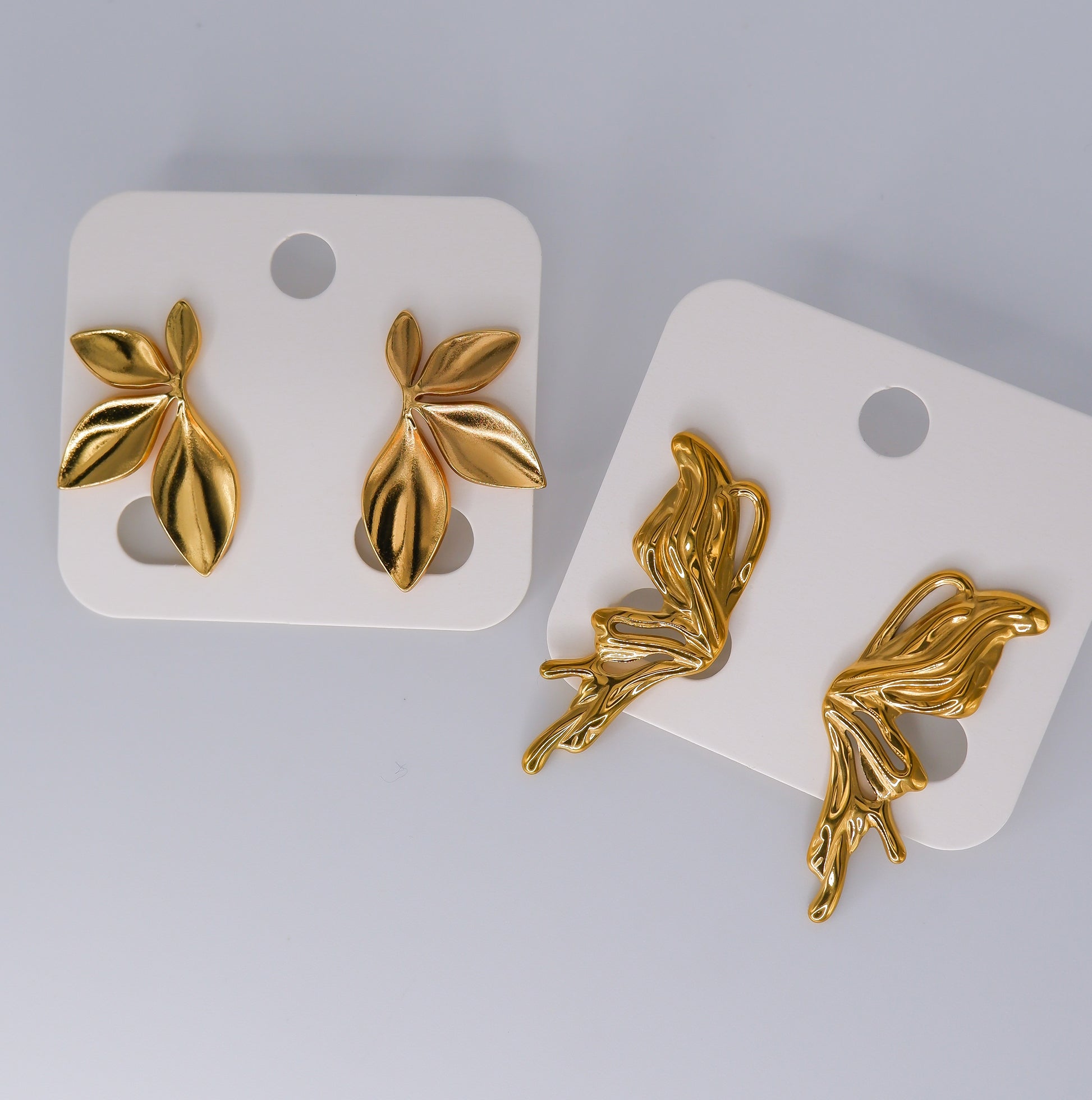 Brincos de Espeto Folhas e Asas de Borboleta
