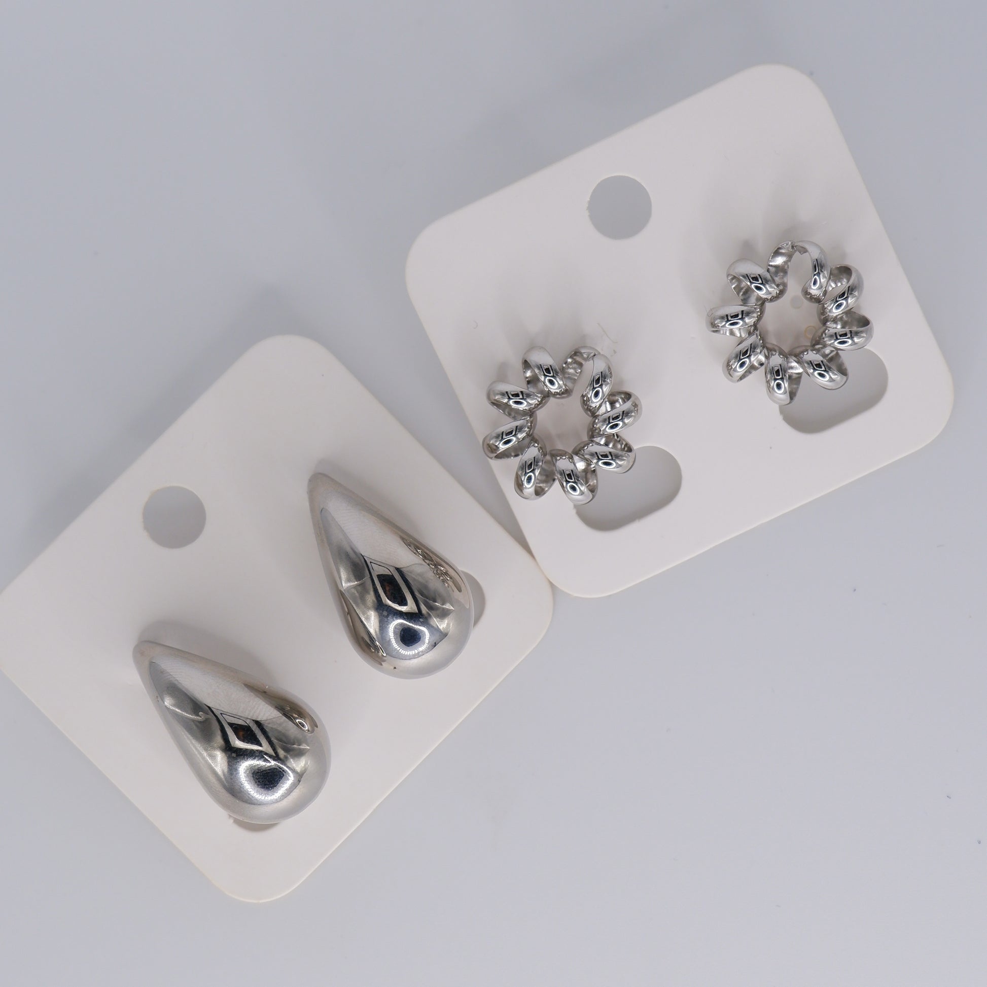 Brincos Prateados Gota e Círculo