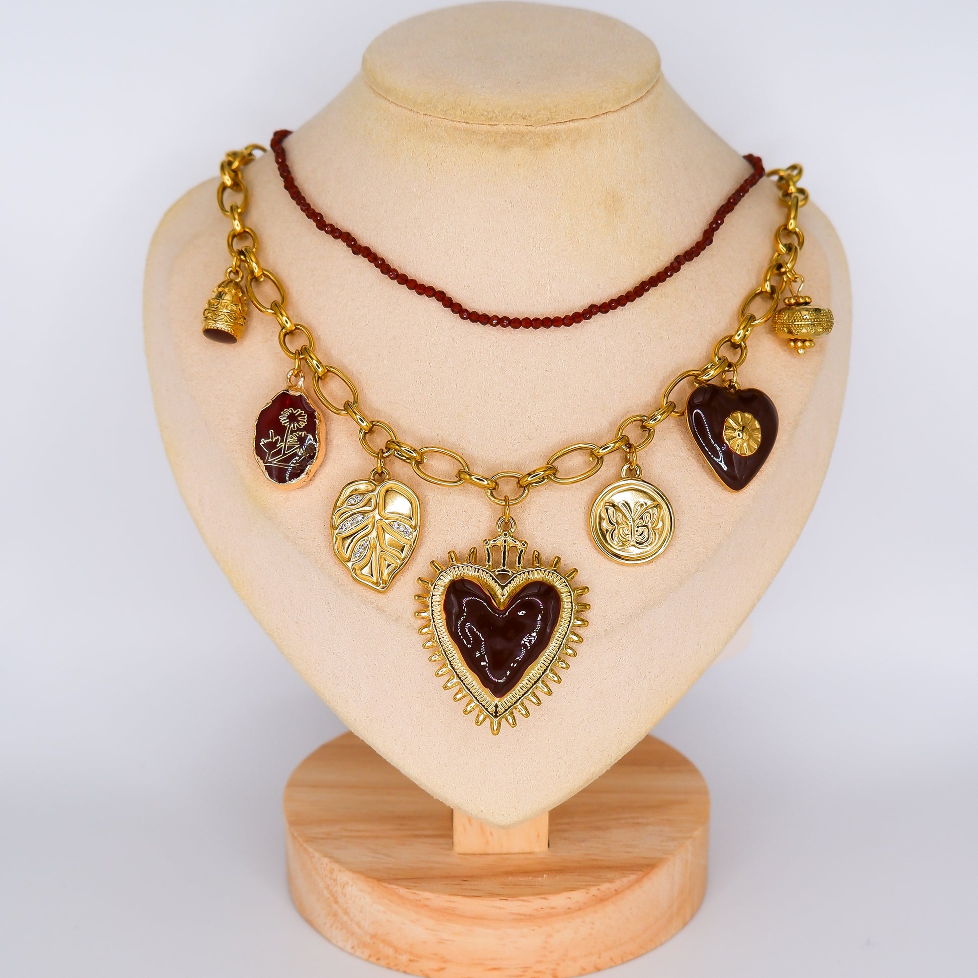 Colar Bordeaux e Pendentes