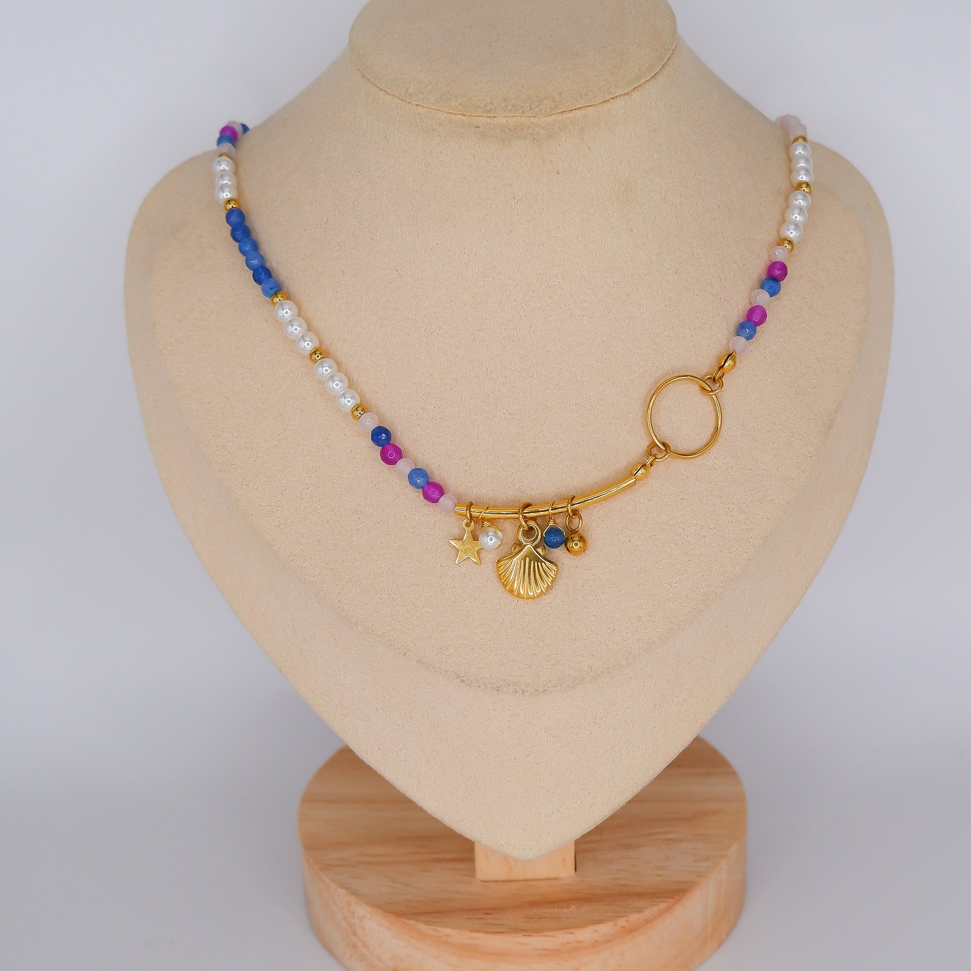 Colar com Miçangas e Pendente de Concha