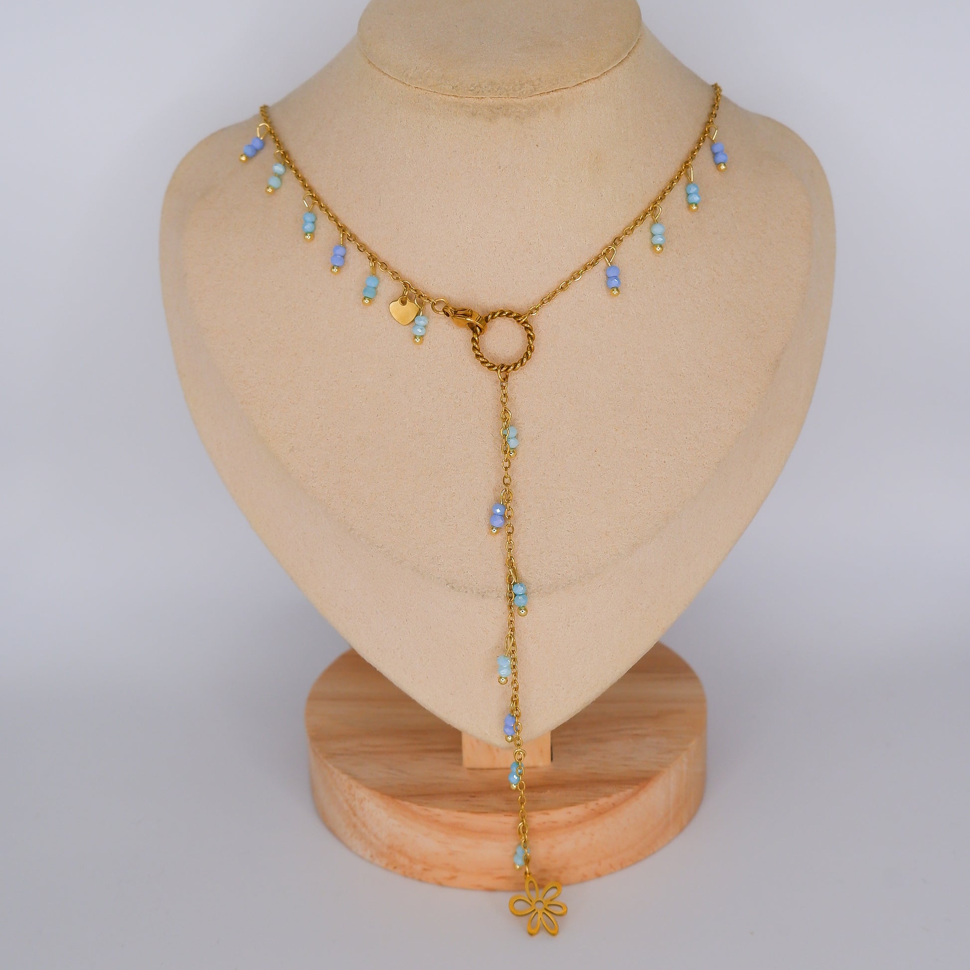 Colar com Pendentes Azuis e Flor