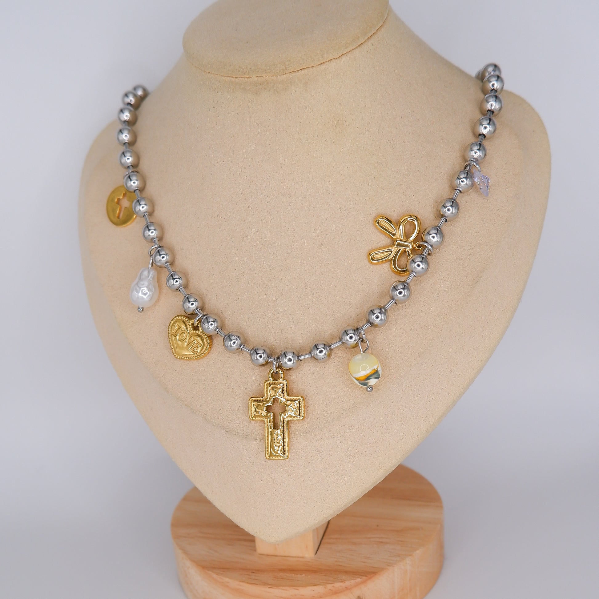Colar de Bolas com Pendentes