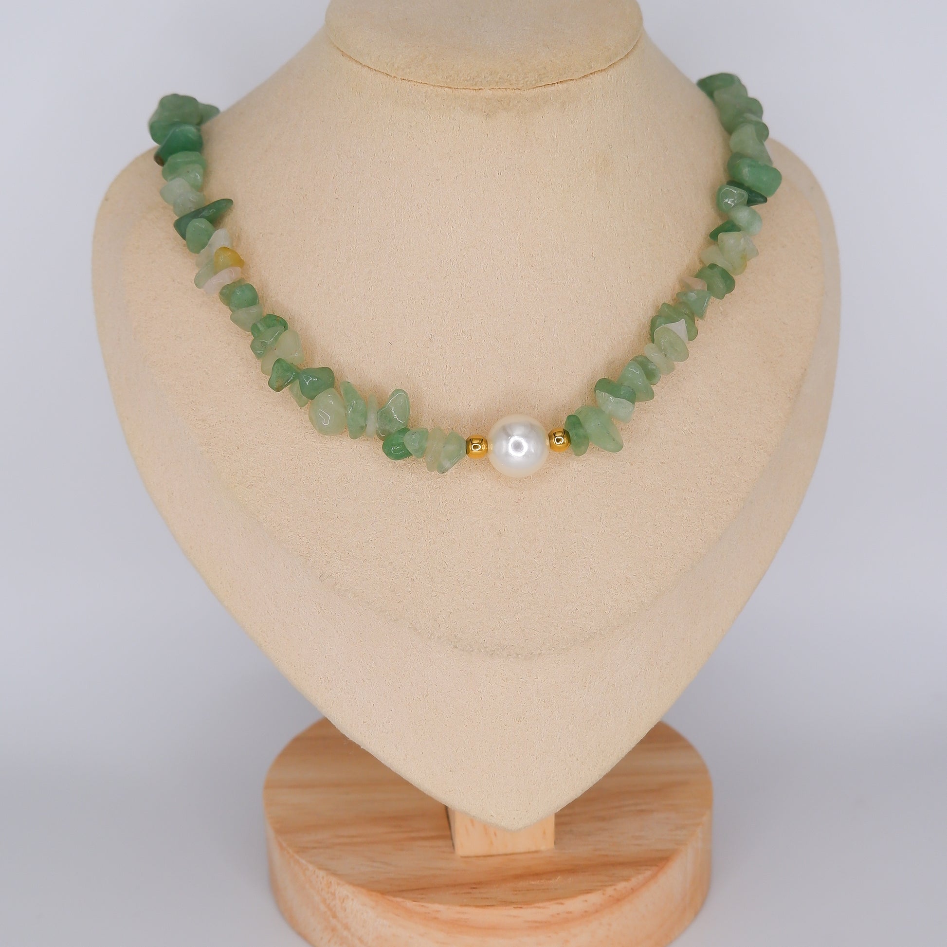 Colar de Pedras Verdes com Pérola
