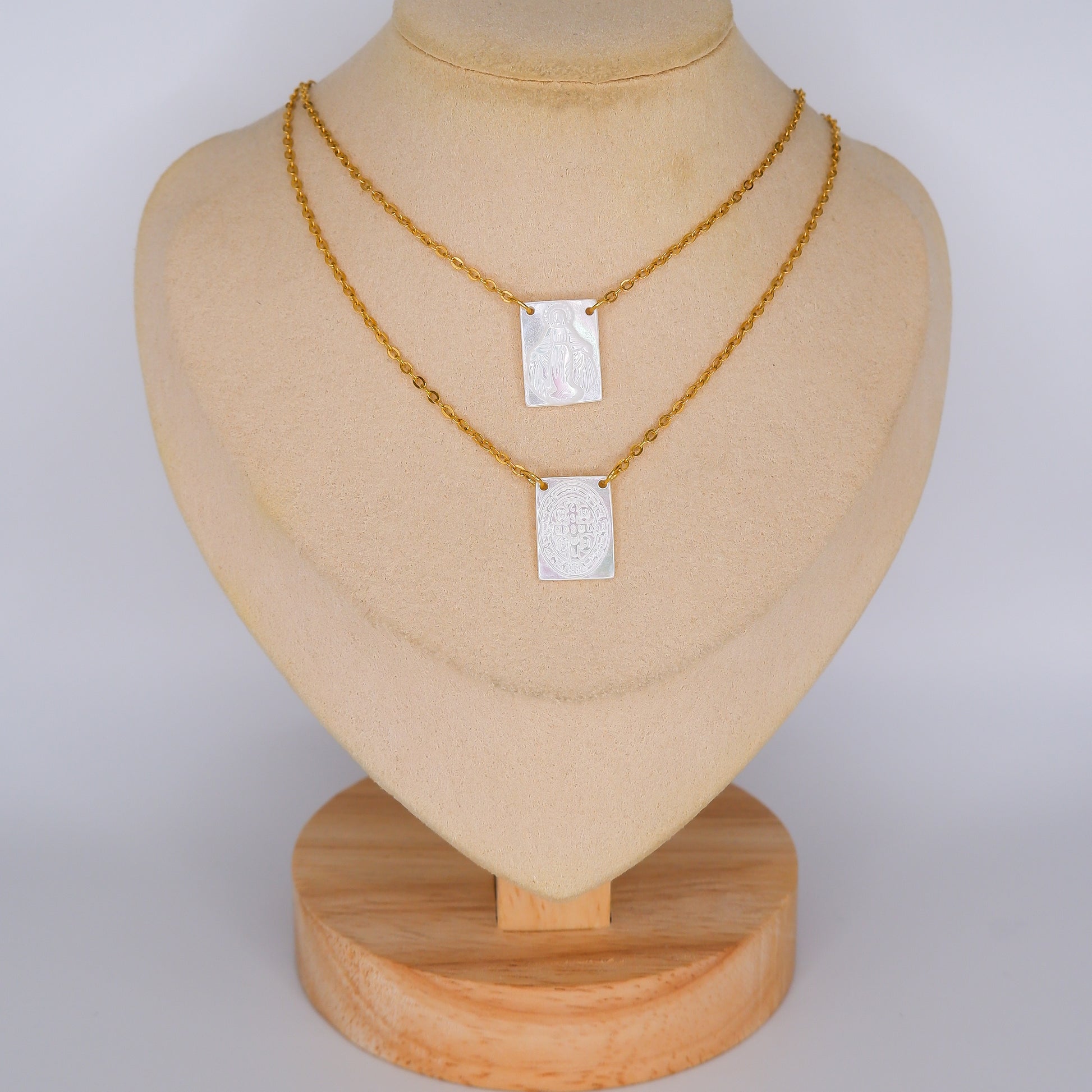 Comprimento Colar Duplo Medalhas Brancas: 31cm Máximo