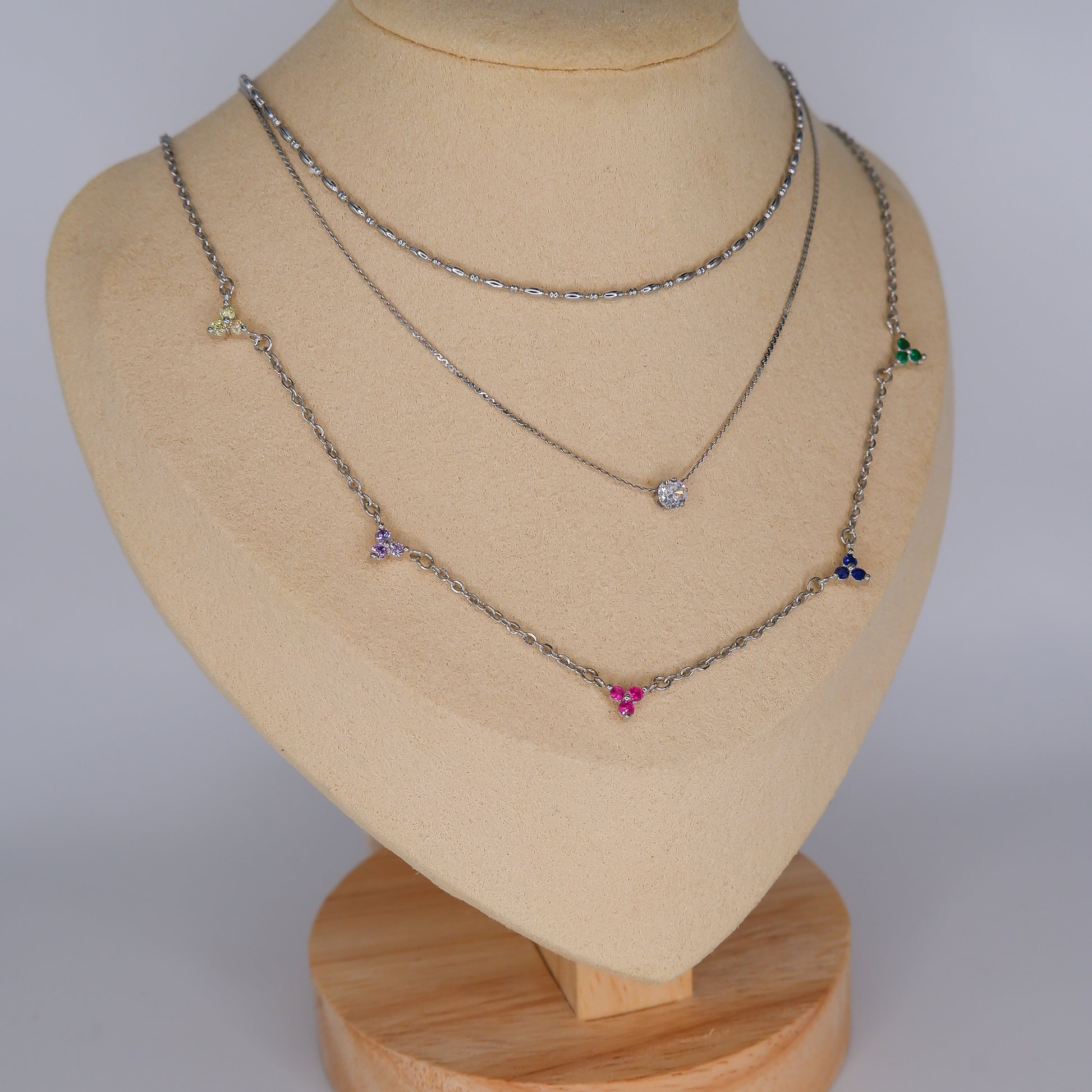 Colar Flores Coloridas, Ponto de luz e malha Prateado