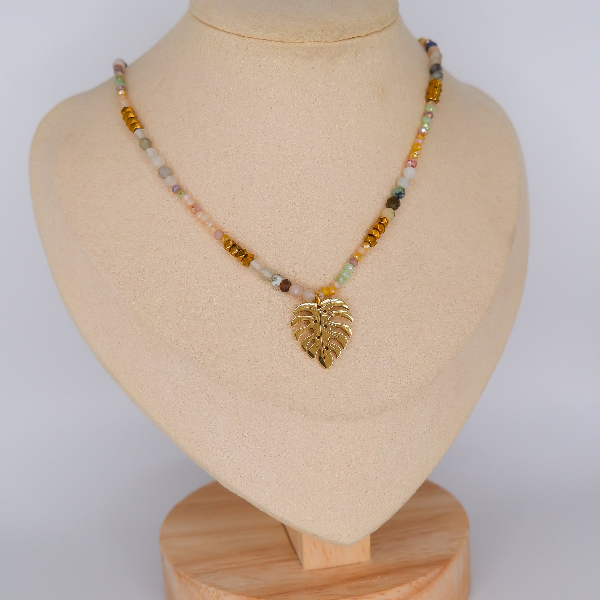Colar Folha e Bolinhas Coloridas
