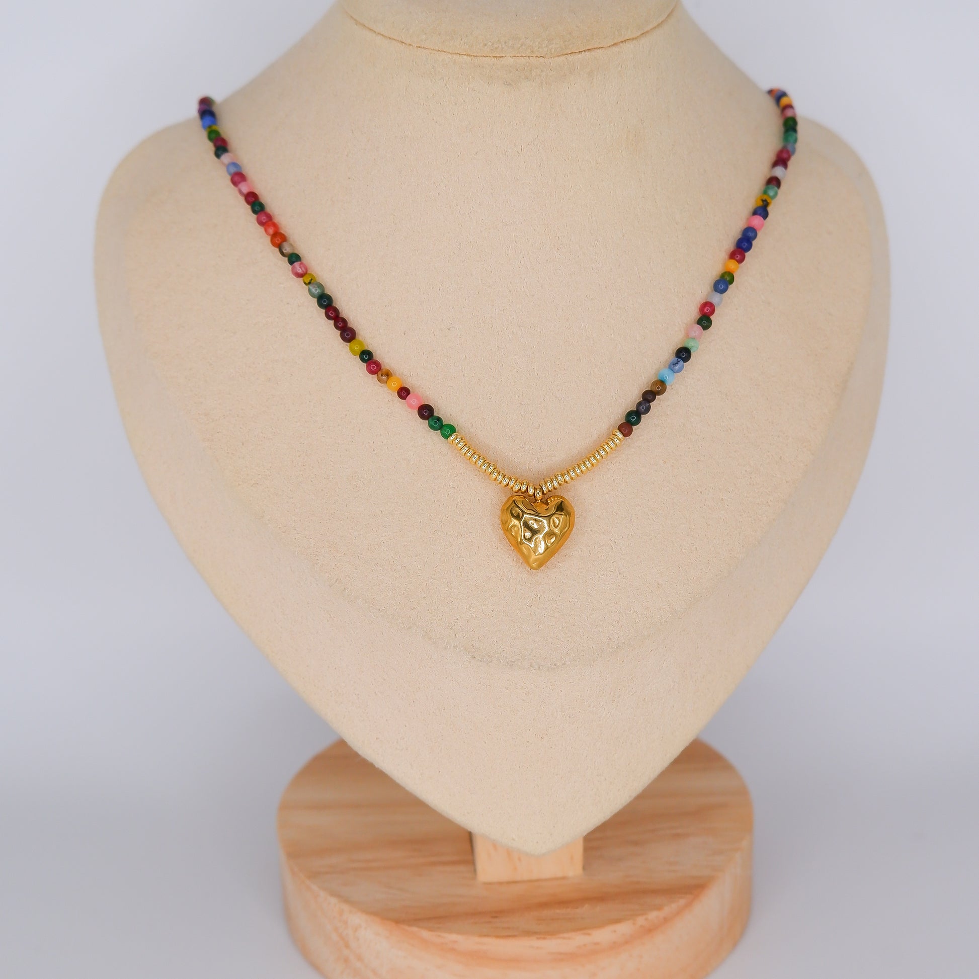 Colar Missangas Coloridas com Coração Pendentes