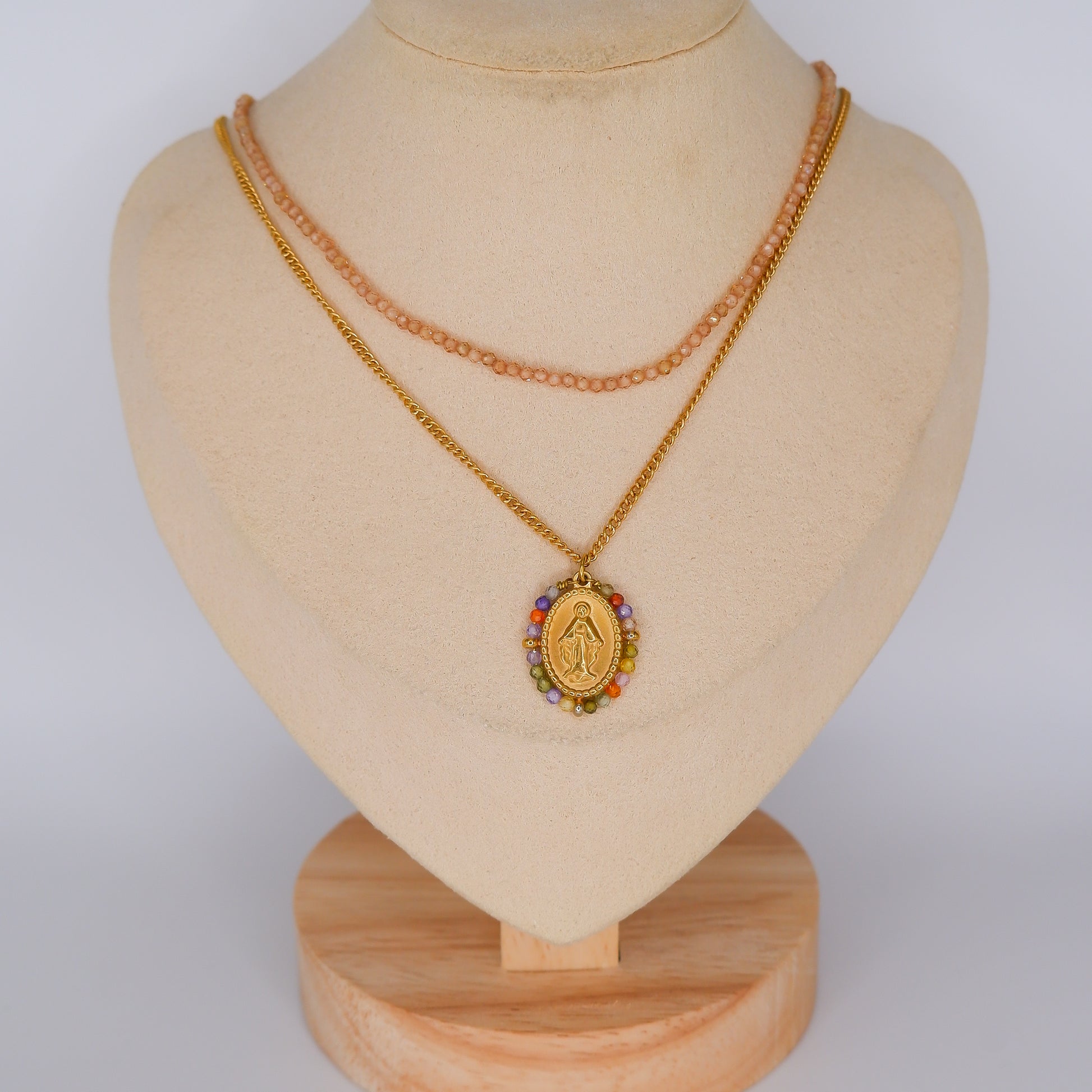 Comprimento Colar Escapulários com Bolas Coloridas:
