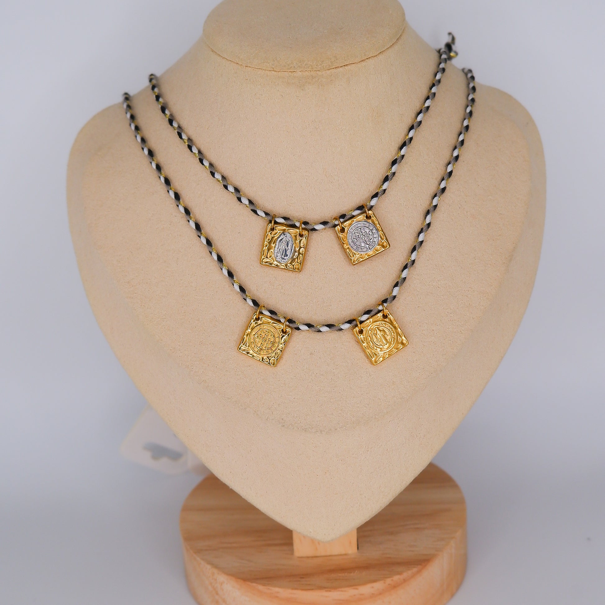 Colares Medalha com Circulo Cinza e Medalha Simples