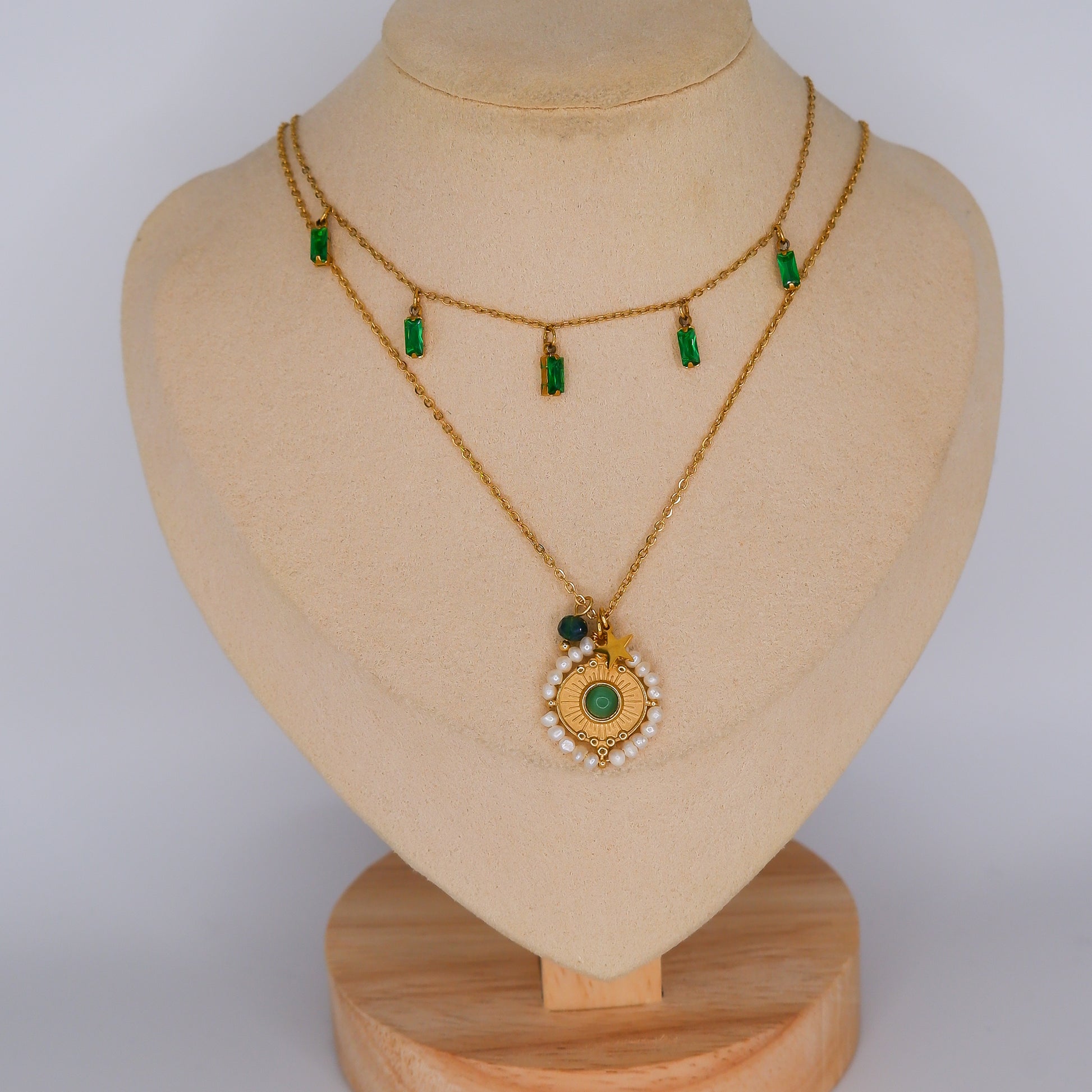 Colares Medalhão com Pedras Pendentes Verdes