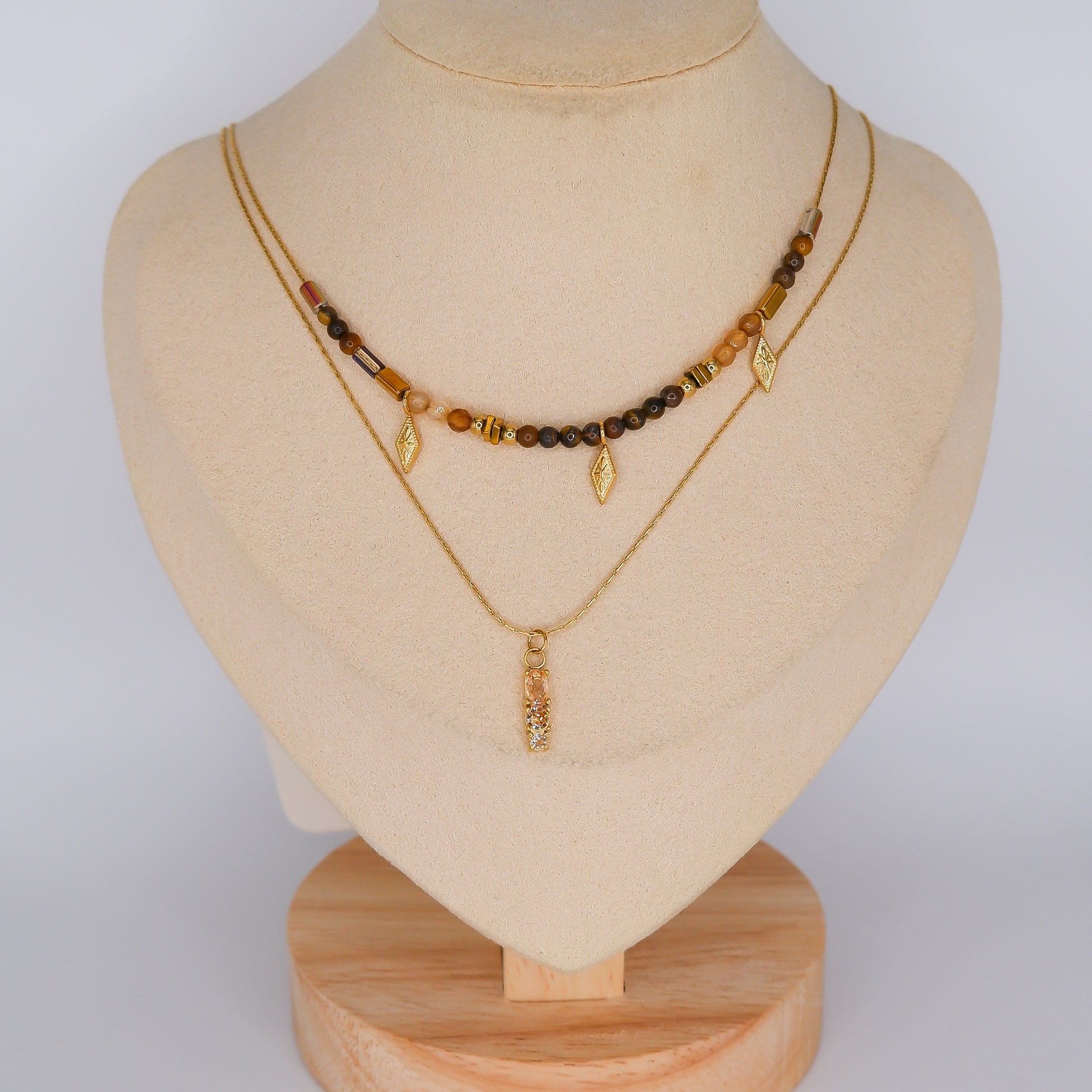 Comprimento Colar Miçangas com Losangos Pendentes: