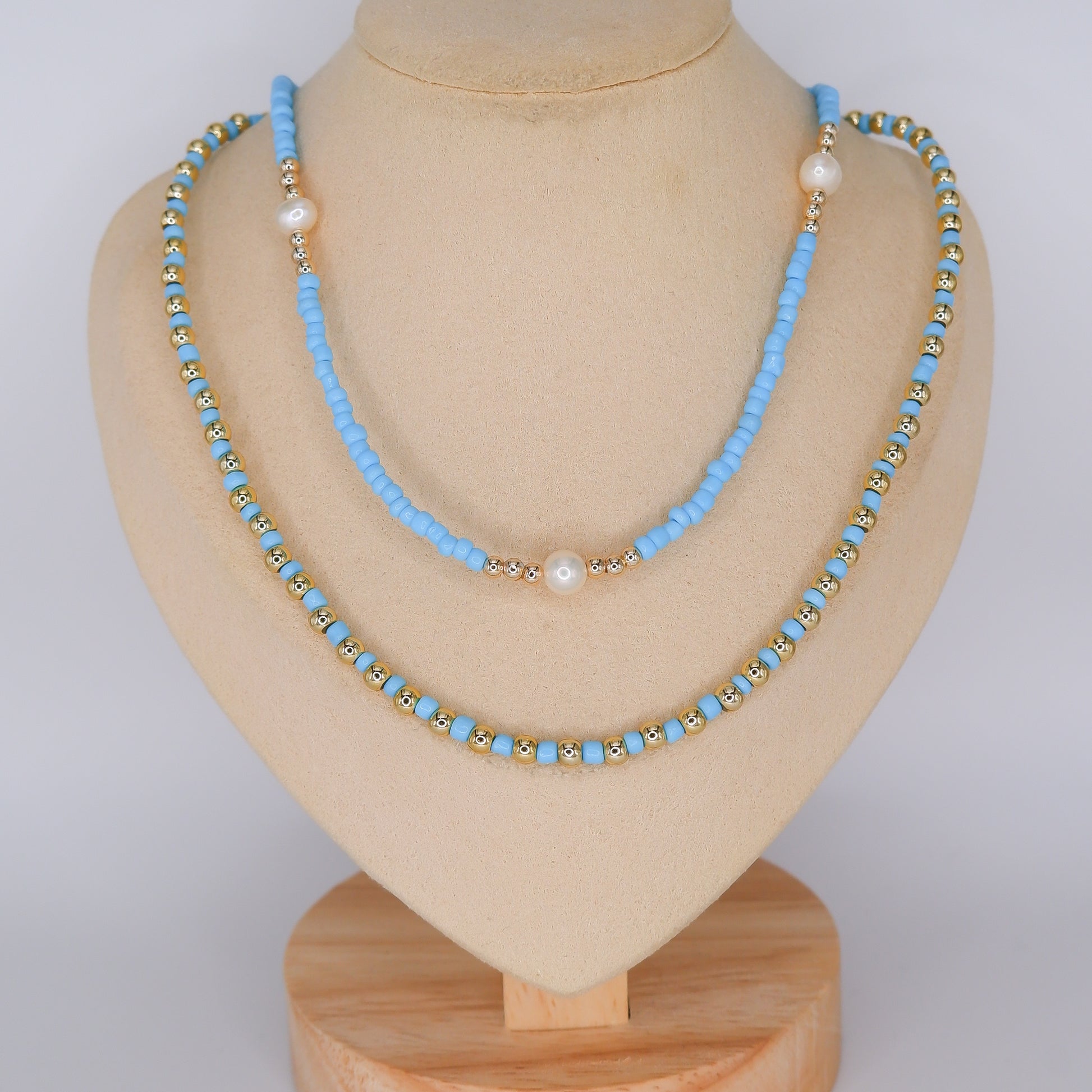 Colares Miçangas com Pérolas e Miçangas Azuis