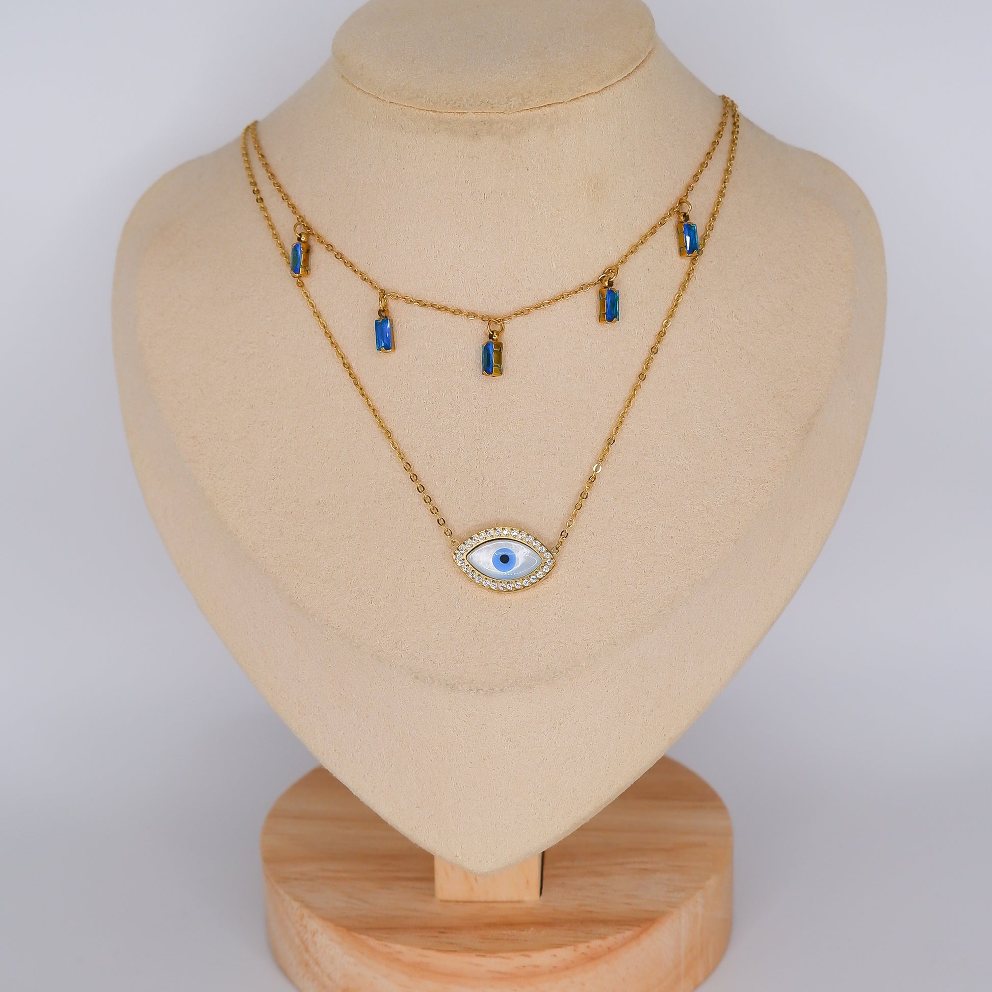 Colares Olho e Brilhos Azuis Pendentes