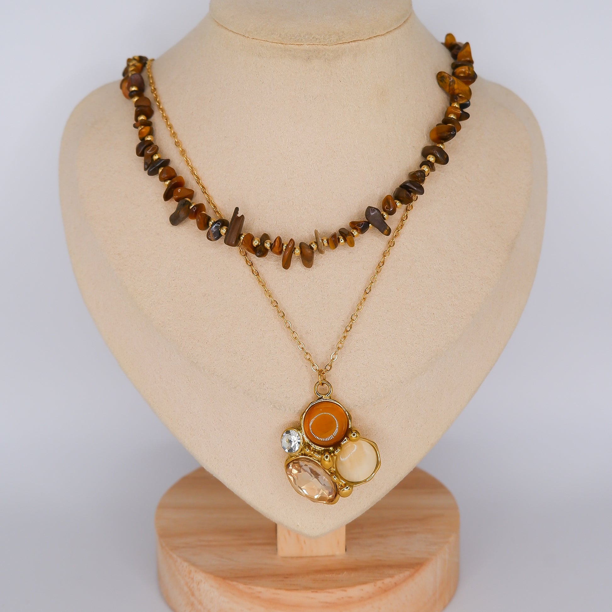 Colares Pedras Castanhas e Brilhos Pendentes Multicolor