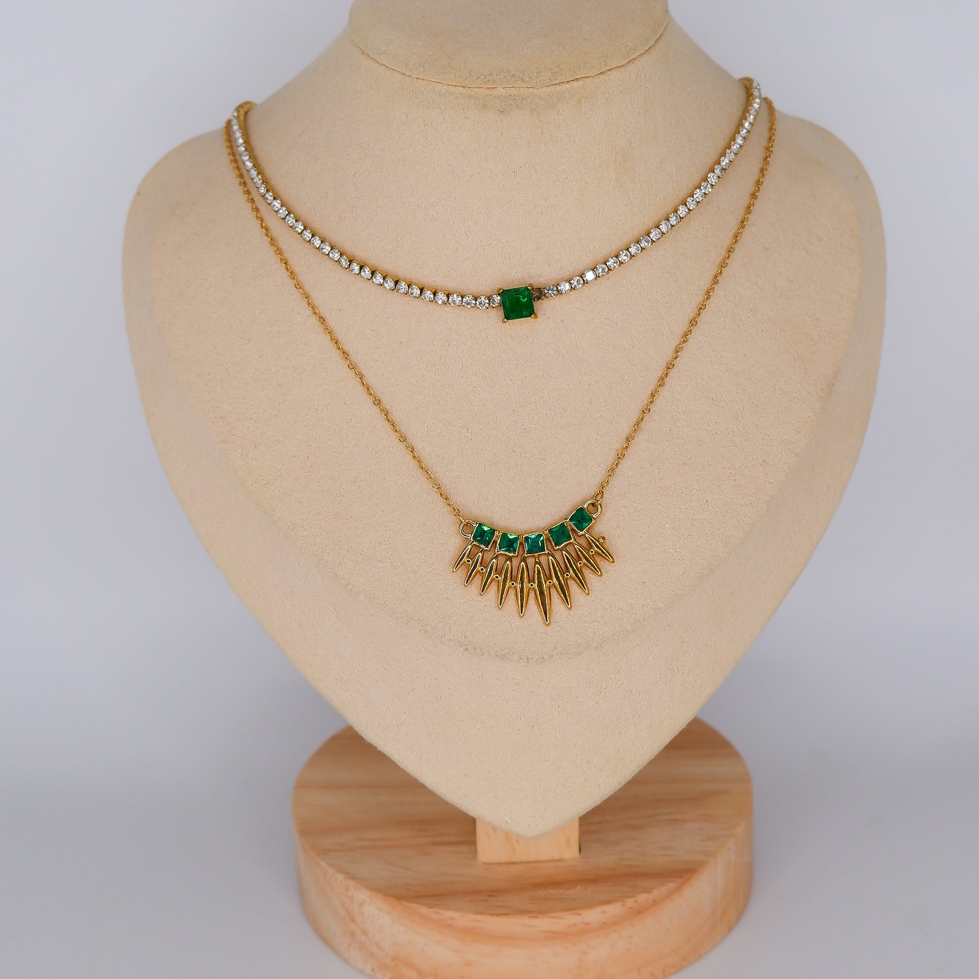 Colares Reviera com Brilhante Verde e Pendente de Espetos Verde
