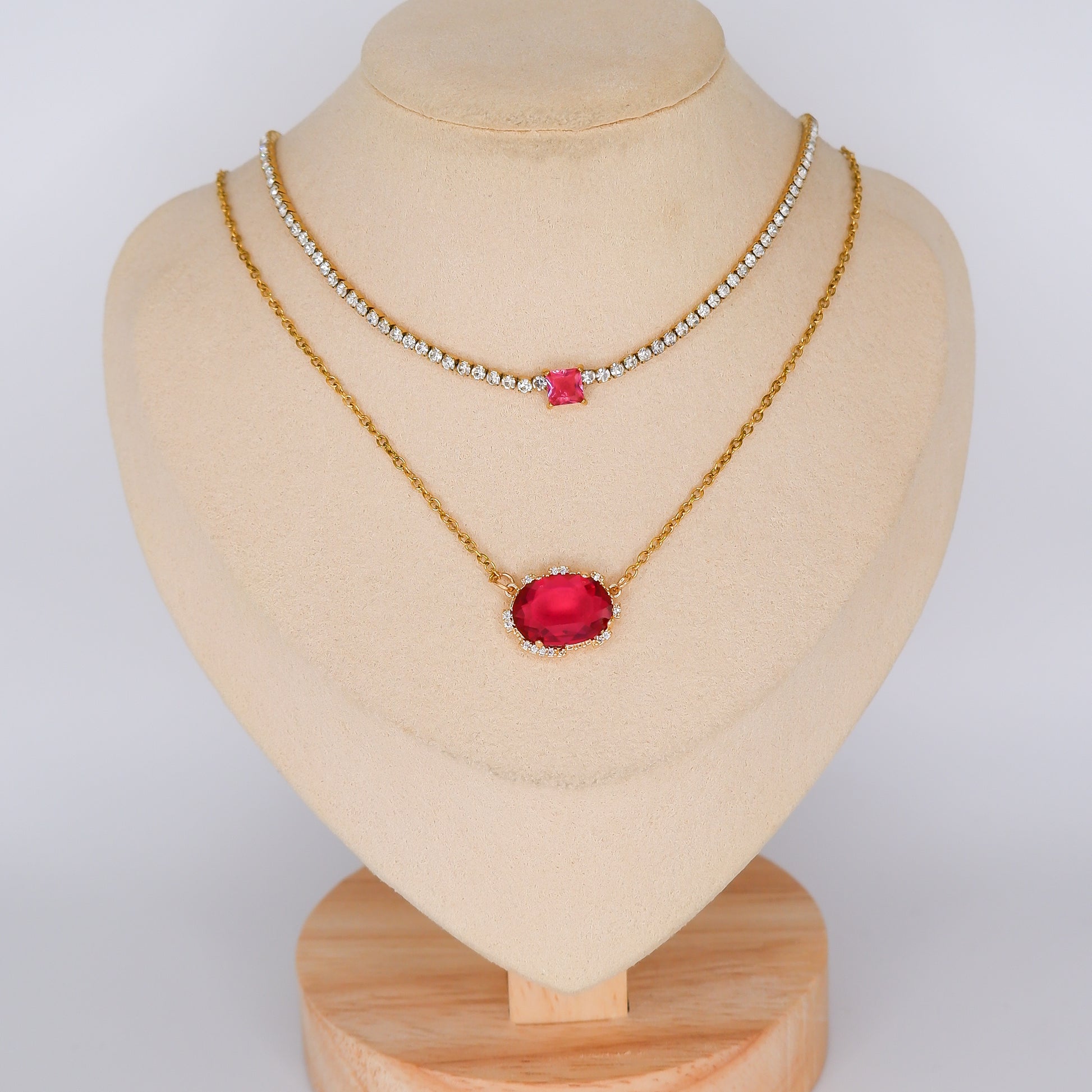 Colares Reviera com Brilho Rosa e Pedra Rosa