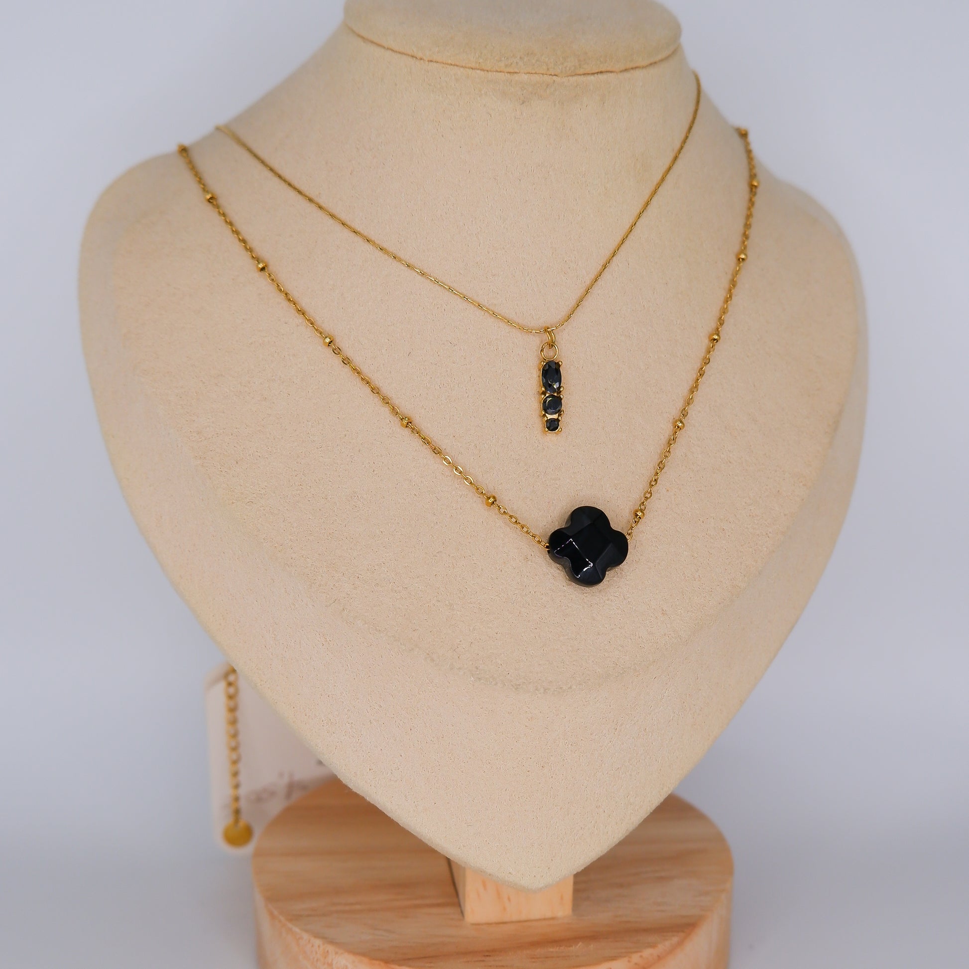 Colares Trevo Preto e Pendente Retangular