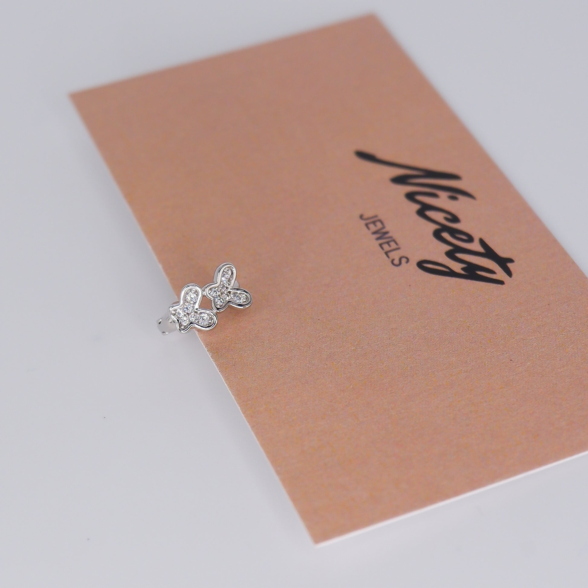 Mini Argola 7,5mm Aço Inoxidável Borboletas Prateadas