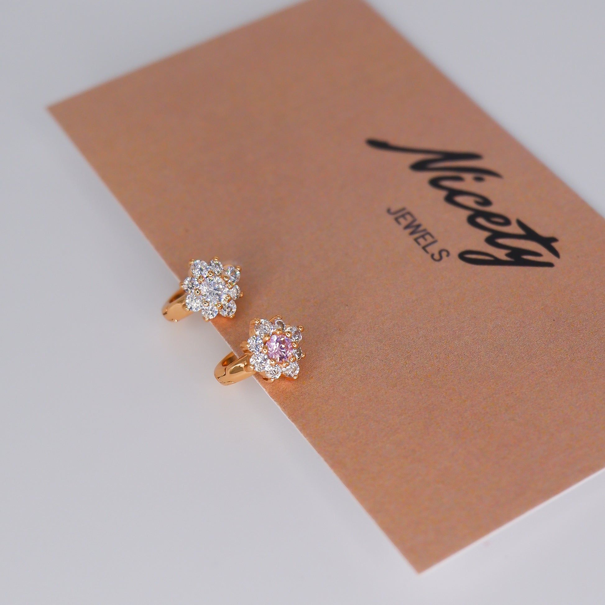 Mini Argolas 6,5mm Hipoalergénicas Flor Transparente e Rosa Bébé