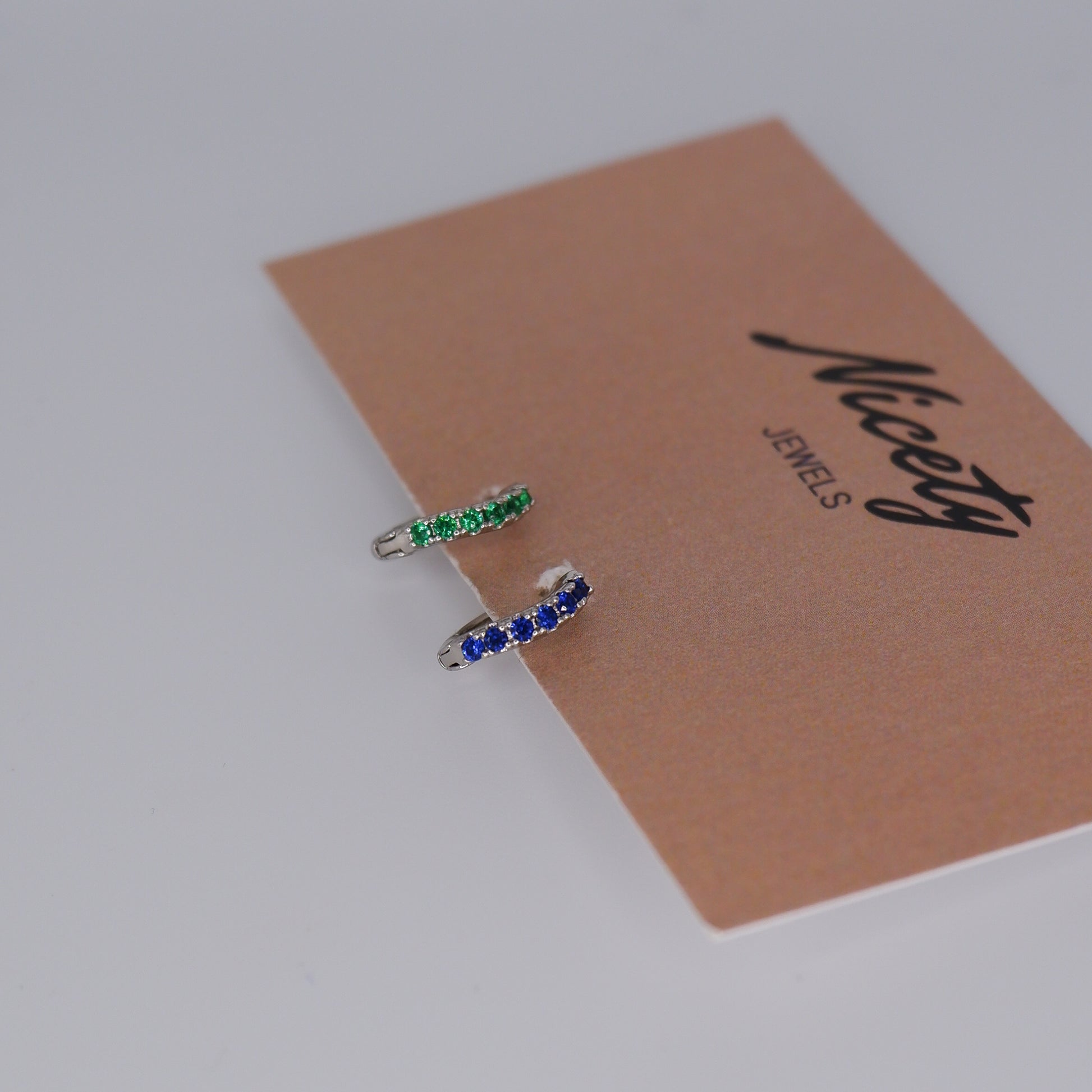 Mini Argolas 7,5mm Hipoalergénicas Prateadas Torta Verde e Azul