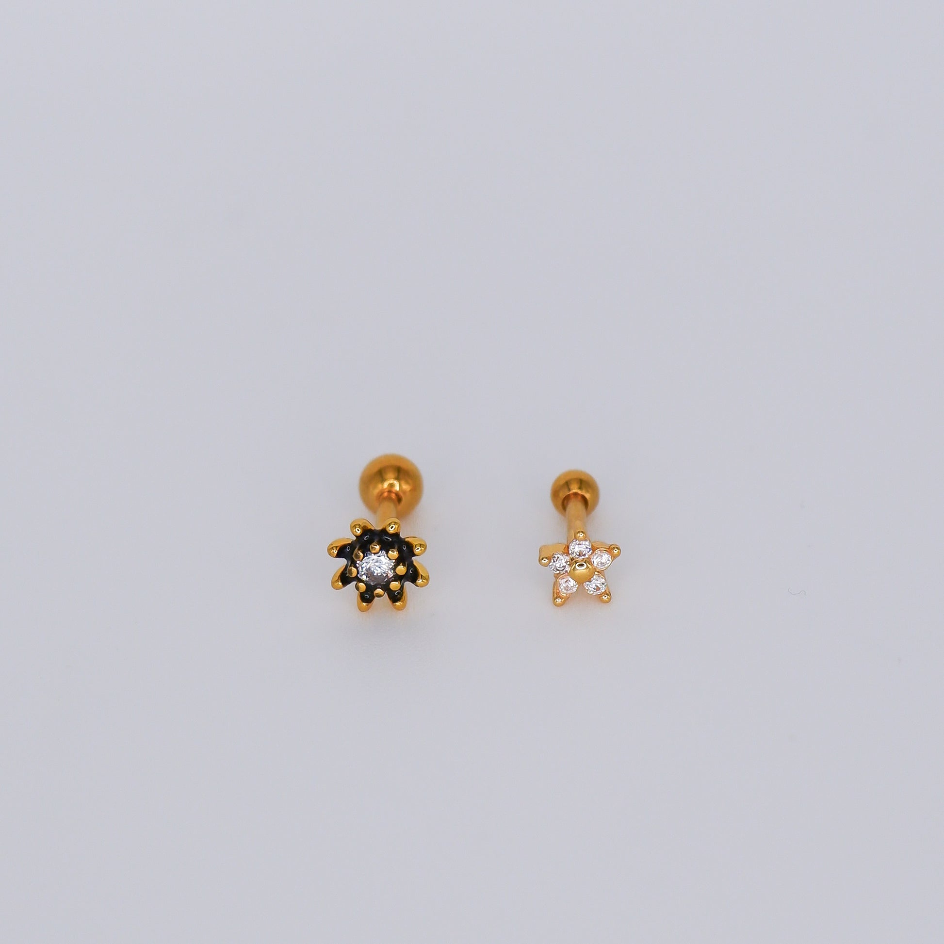 Piercing Bolinha Flor Preta e Flor Transparente