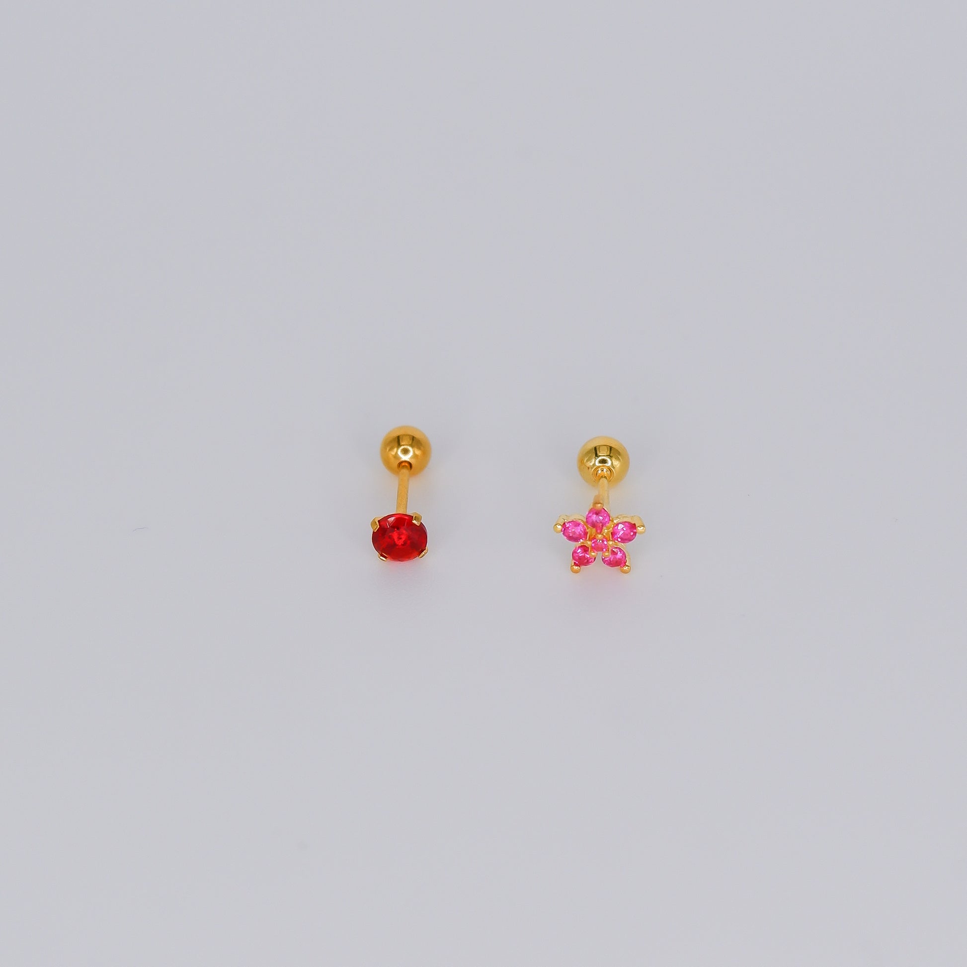 Piercing Bolinha Flor Rosa e ponto de Luz