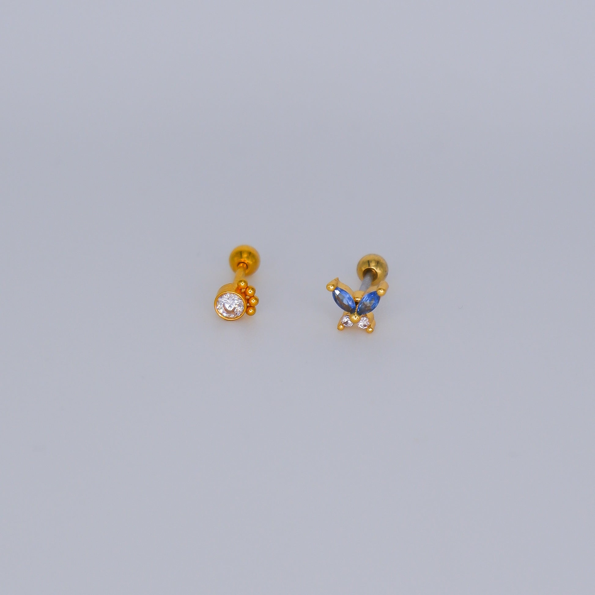 Piercing Bolinha Aço Inoxidável Brilhante e Borboleta