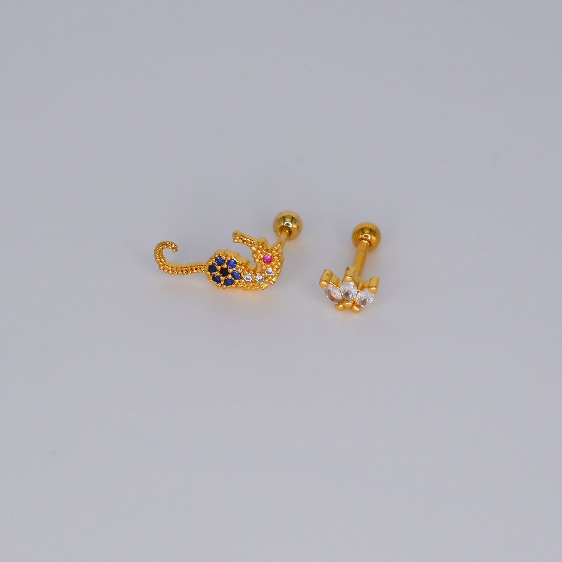 Piercing Bolinha Aço Inoxidável Cavalo Marinho e Coroa