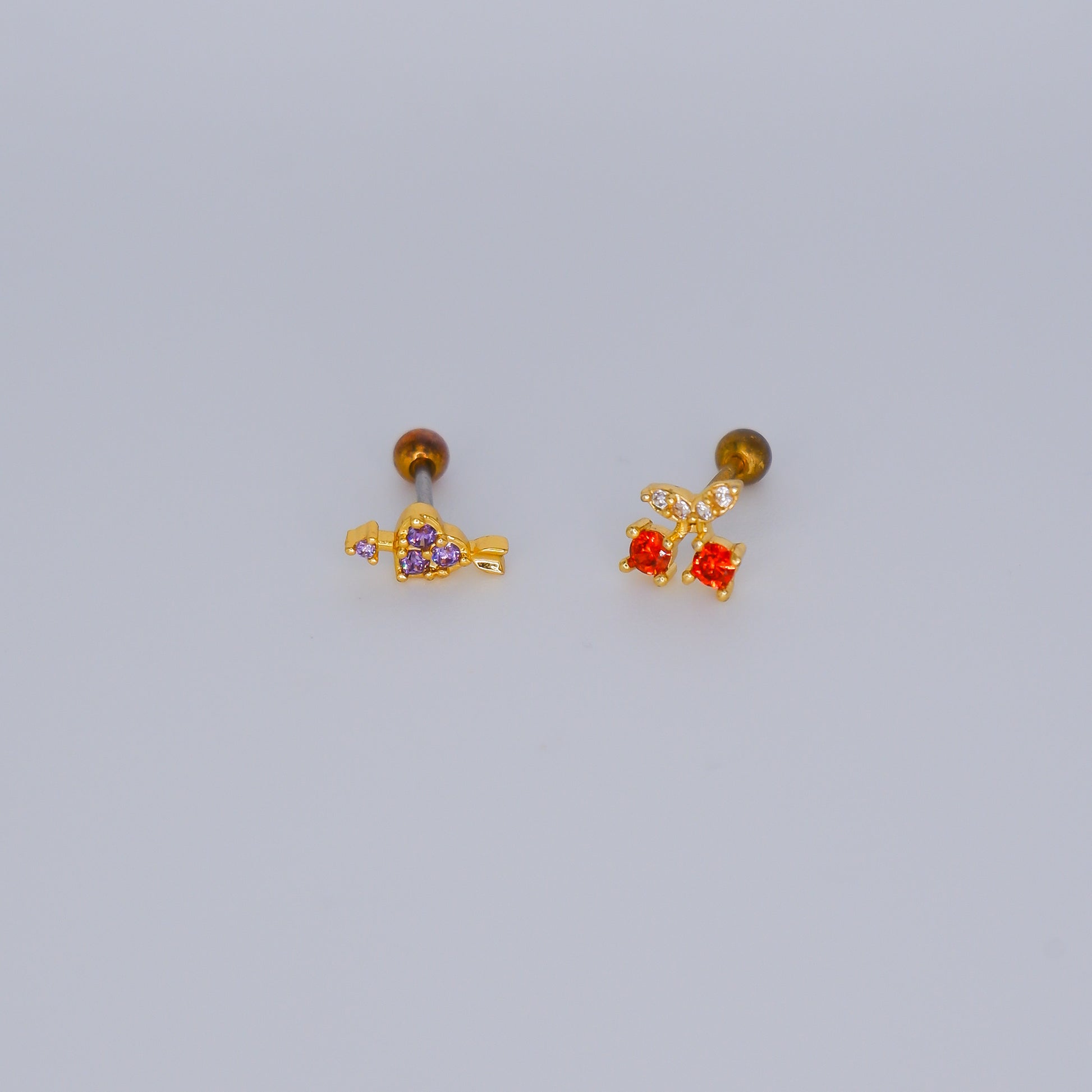 Piercing Bolinha Aço Inoxidável Coração e Cereja