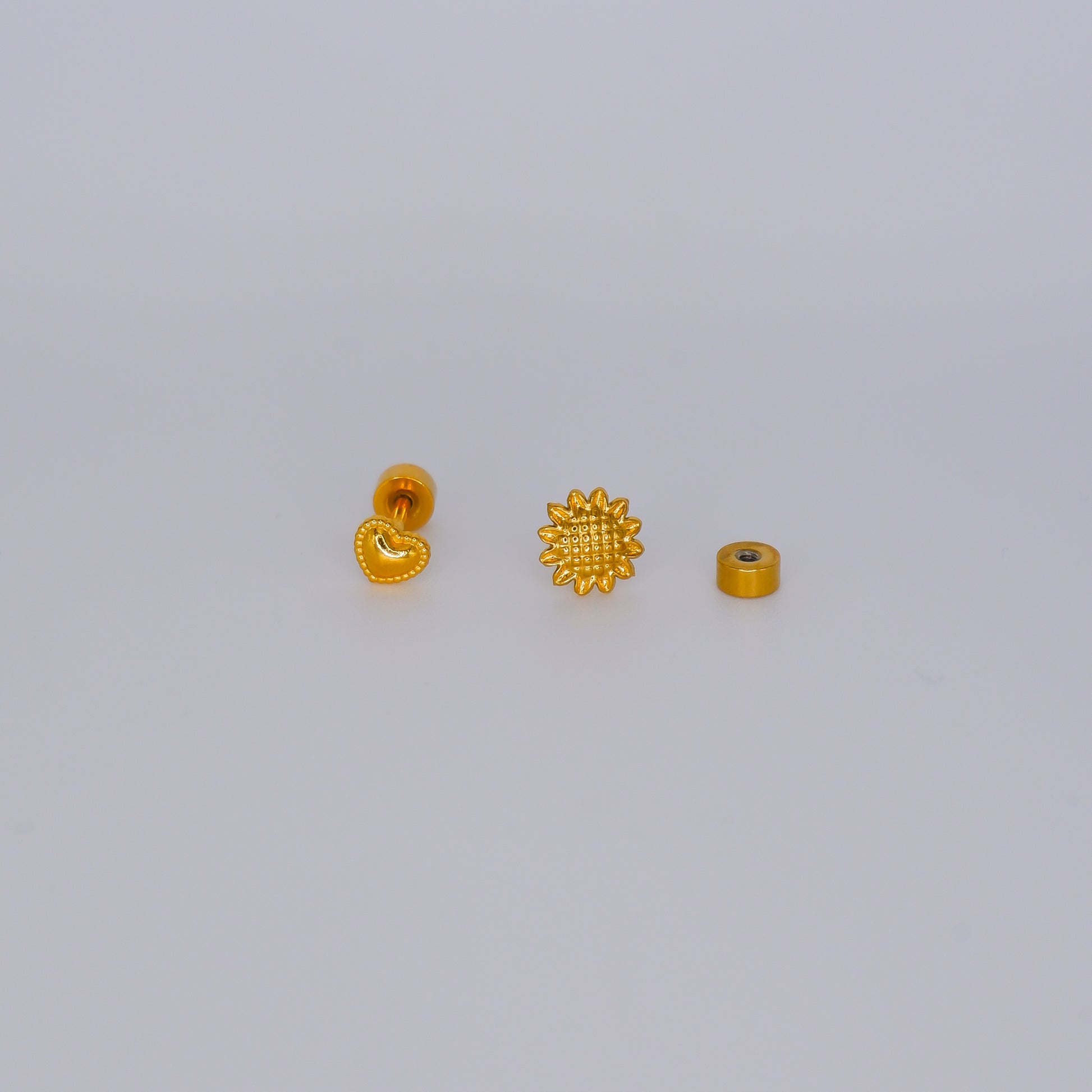 Piercing Bolinha Aço Inoxidável Coração e Girassol