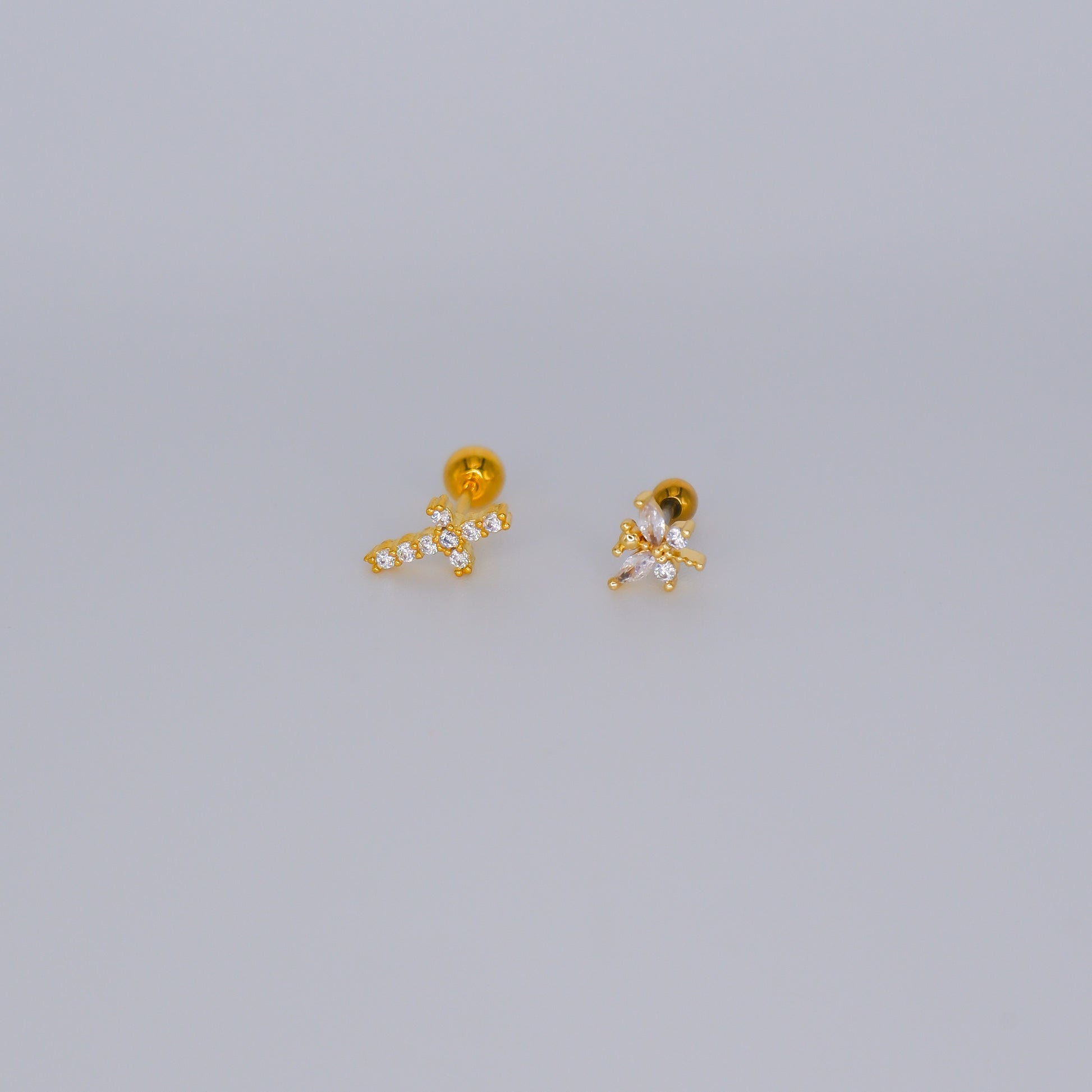 Piercing Bolinha Aço Inoxidável Cruz e Libelinha