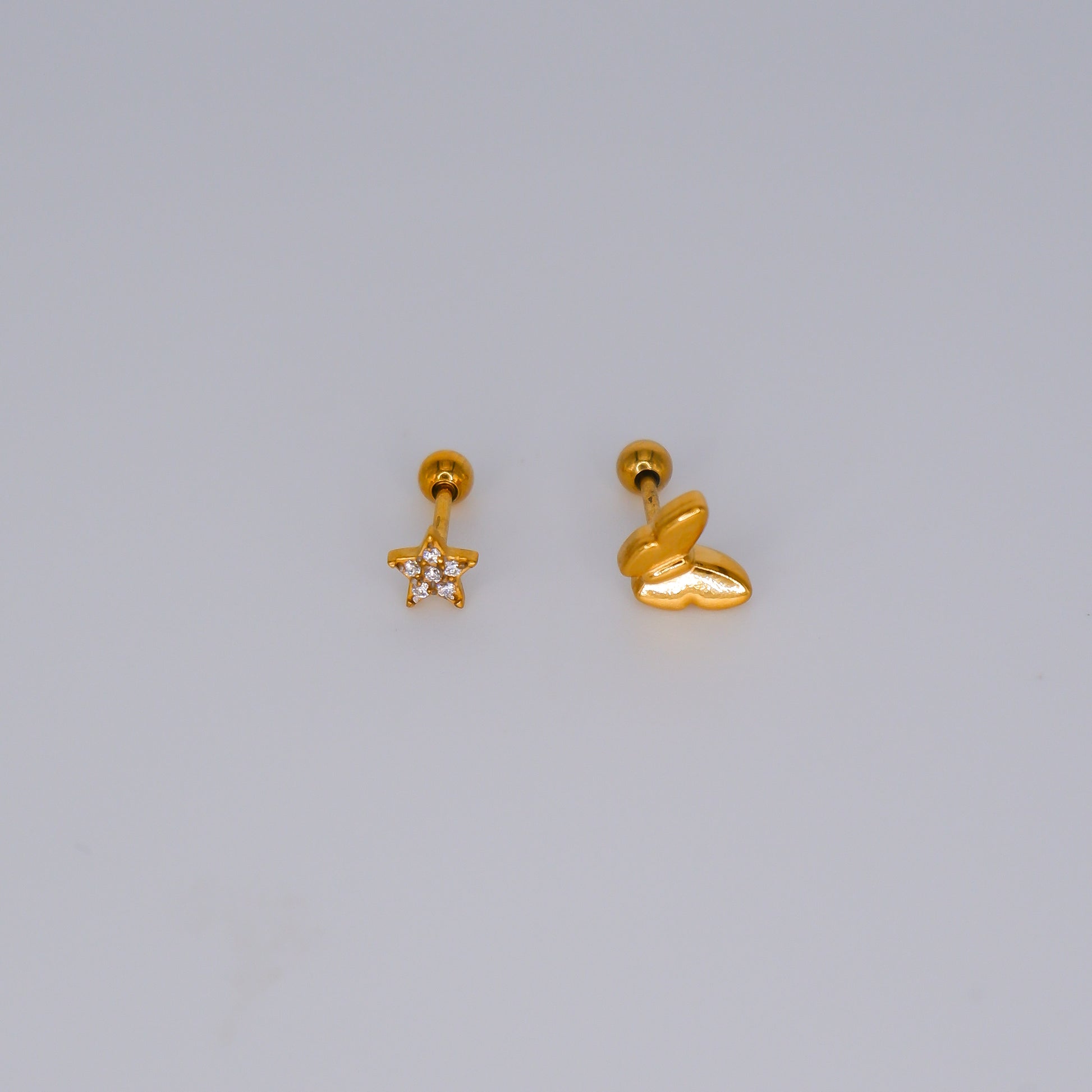 Piercing Bolinha Aço Inoxidável Estrela e Borboleta