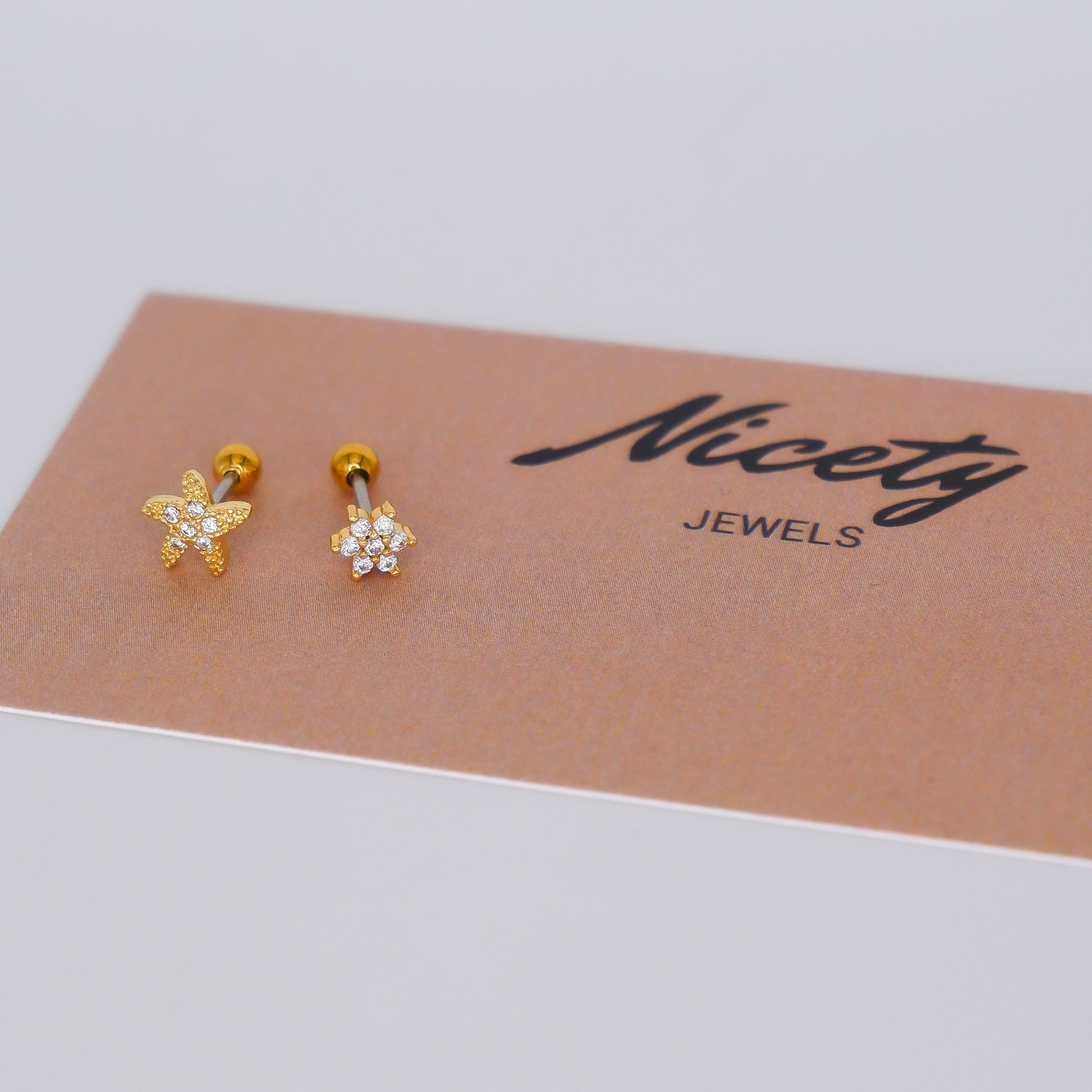 Piercing Bolinha Aço Inoxidável Estrela e Flor
